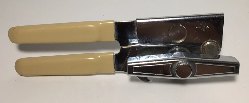 Swing Away USA 7 inch Can Opener Bottle Opener Beige Vinyl Grips Manual #9 The can opener is in good working condition. It does have some minor rust and wear from use. Please feel free to ask any questions. The item will ship out safely and securely the same or next business day.