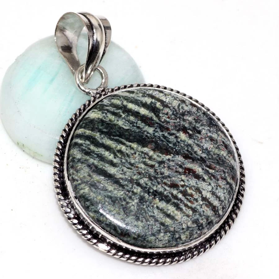 Swiss Green Opal 925 Silver Plated Round Pendant 1.7" Fast-Selling Gift JW