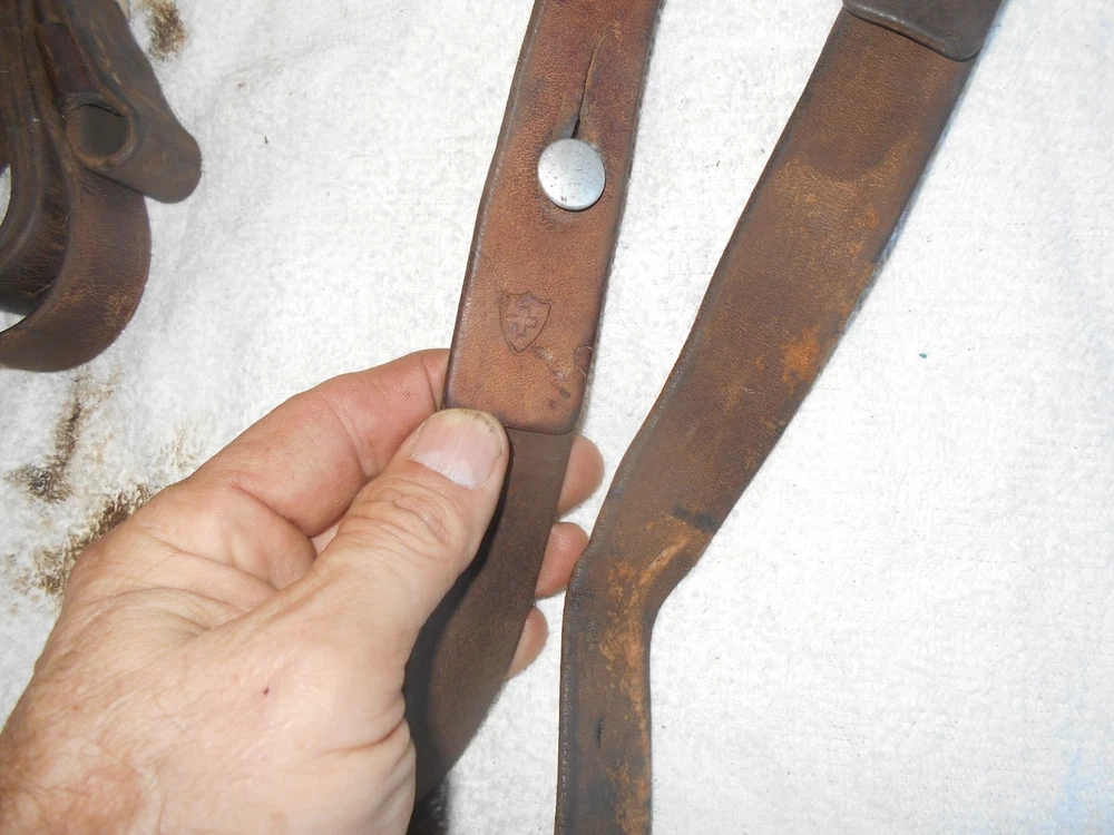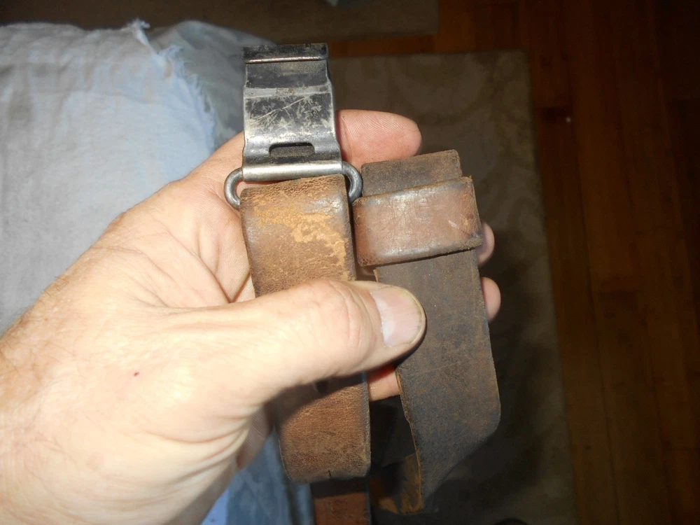 One original swiss marked model K-31 K-11 1899 96/11 schmidt rubins riflebrown leather sling with sling swivel clip,belt keeper and stud,good servicable condition,not perfect,but still imminently servicable,all slings are swiss marked ,first come first served. see my other listings for more Swiss schmidt rubins K31,K11 rifle parts and accessories International bidders will need to contact me for shipping information