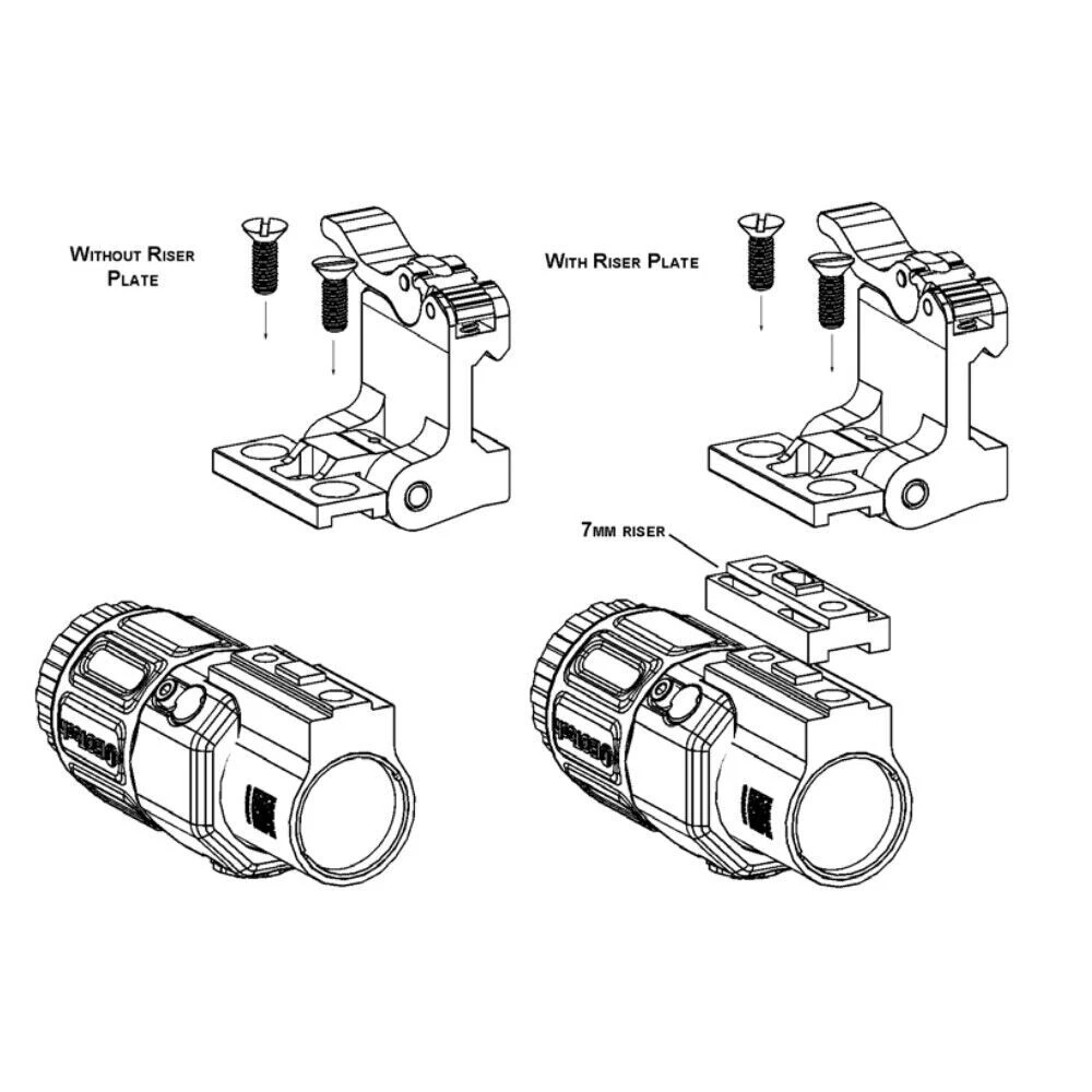 Switch to Side STS Mount For G30 G33 G43 G45 Magnifiers with 3mm 6.7mm 6.9mm Riser Product Description The Switch to Side (STS) Mount is a revolutionary design that provides fast transitioning use of a magnifier. When that extra power is needed and seconds count, the STS is the perfect mounting solution. This is the standard mount that comes with the G33, G43 and G45.STS Mangifier Mount is compatible with G30, G33, G43 and G45 Magnifiers.