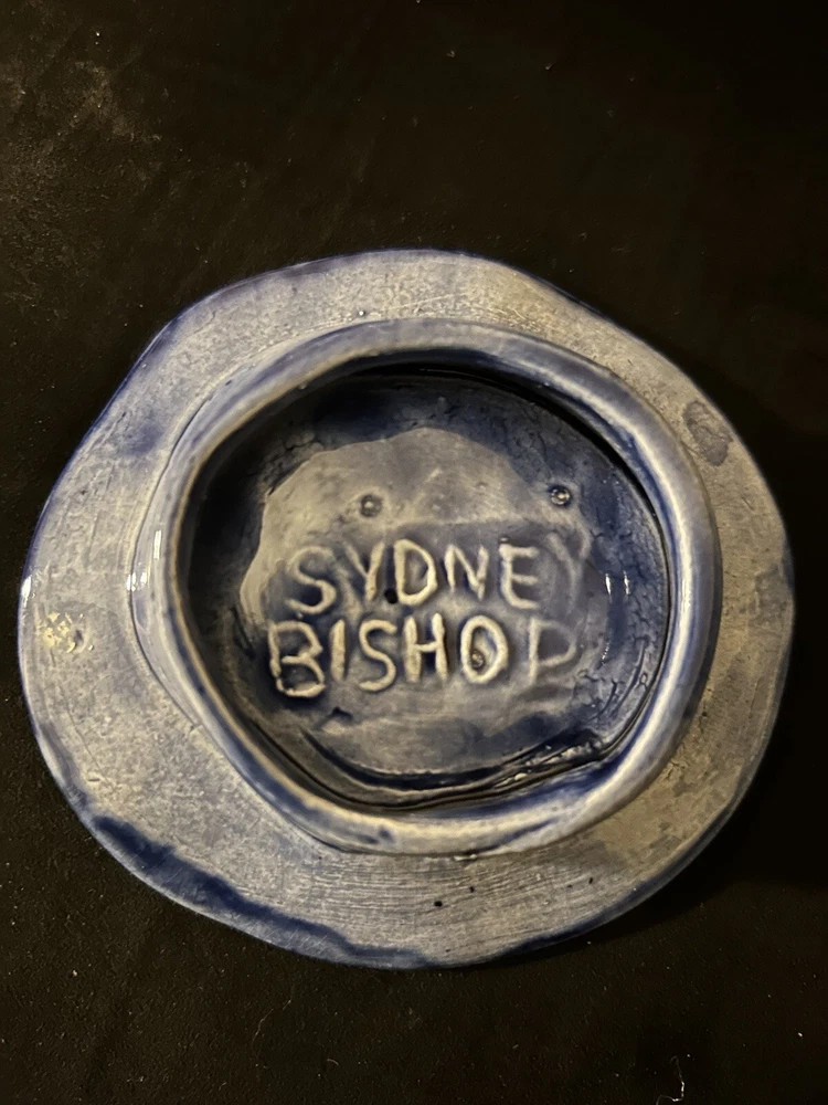 This beautiful ceramic dish, created by renowned artist Sydney Bishop, is a unique and charming addition to any home. With a colorful all-over sea shell pattern and hand-painted textured finish, this dish is both decorative and functional. Measuring 1 inch in height and 3 3/4 inches in width, it's perfect for holding trinkets, tea bags, or other small items. The dish is an original piece of art pottery, with an incised backstamp and a salt glaze finish. Its vintage style and beach-themed design make it a great choice for collectors or anyone who loves sea life. Whether you're using it to accent your home decor or giving it as a gift, this handmade dish is sure to impress.