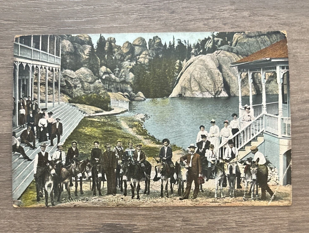 Sylvan Lake and Hotel Black Hills South Dakota 1908 Postcard Horse Riders