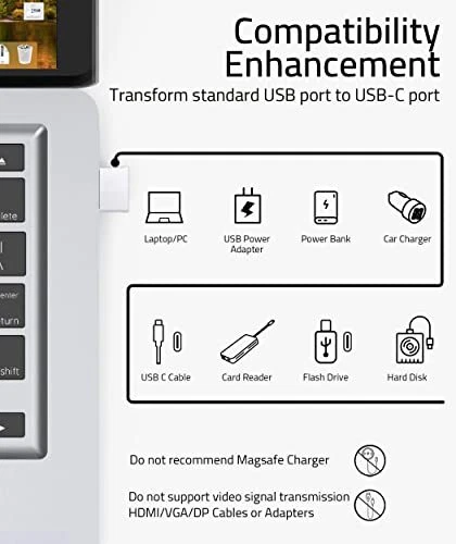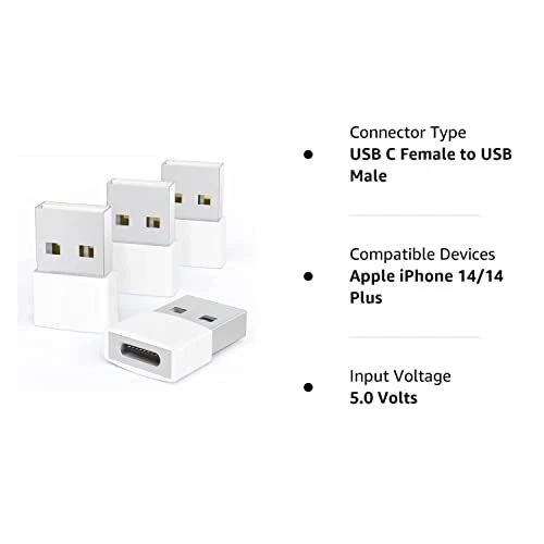 Syntech USB to USB C Adapter 4 Pack, Type C Female to USB Male Converter Power Charger Cable Adapter Compatible with MagSafe Apple Watch Series 9/SE/Ultra 2 iPhone 15 Plus Pro Max AirPods Pro, etc [Efficient and Stable] Offer USB 2.0 data transfer speed up to 480 Mbps and supports enough power output for 3A fast charging. Please be noted: If you use it with Magsafe, a 15w or higher power adapter is recommended. [Compatibility]: Turning USB ports into USB-C ports to connect USB-C peripherals to devices with USB-A ports built-in. This USB C adapter enables you to connect phones, tablets, flash drives, mice, hubs and other USB-C devices to your laptops and chargers with normal USB ports. [Unique Design]: The white colour matches your charging cables and power adapters. The anti-slip design perfectly solved the plug and unplug issue. Easy to stick on the charging cables or plugs all the time. [Reliable]: Made of high-quality plastic case and premium chip set, this adapter undergoes a fatigue plug test and has been proven to be reliable and durable. [Cost-effective and Convenient]: No installation required. Simply plug and work. Receive 4 packs in one shopping and solve all your inconveniences. [Efficient and Stable] Offer USB 2.0 data transfer speed up to 480 Mbps and supports enough power output for 3A fast charging. Please be noted: If you use it with Magsafe, a 15w or higher power adapter is recommended. [Compatibility]: Turning USB ports into USB-C ports to connect USB-C peripherals to devices with USB-A ports built-in. This USB C adapter enables you to connect phones, tablets, flash drives, mice, hubs and other USB-C devices to your laptops and chargers with normal USB ports. [Unique Design]: The white colour matches your charging cables and power adapters. The anti-slip design perfectly solved the plug and unplug issue. Easy to stick on the charging cables or plugs all the time. [Reliable]: Made of high-quality plastic case and premium chip set, this adapter undergoes a fatigue plug test and has been proven to be reliable and durable. [Cost-effective and Convenient]: No installation required. Simply plug and work. Receive 4 packs in one shopping and solve all your inconveniences. Shipping from the USA All of our products are shipped from the USA, ensuring quick delivery to your destination. Payment We offer the following payment methods: PayPal, credit card, bank transfer, and eBay's secure payment system. Free Shipping & Free Returns Shipping within the USA is FREE. Additionally, any return is absolutely free for you. Risk-Free Purchase You have the option to return an item within 30 days without any justification. We cover the return shipping costs! Fast Shipping We ship immediately upon receipt of payment. Generally, the package is delivered within 2-3 days in the USA. If it takes longer, we will contact you. Quality and Costs Made in Europe, USA, China No customs fees or additional charges Total satisfaction guarantee Invoice with declared VAT available upon request in .pdf format Feedback Your feedback is very important to us. After you pay for your purchase, you will automatically receive positive feedback from us.