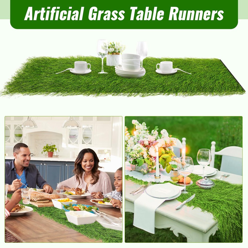 Faux thatch green table runner with evergreen and realisic appearance, ideal for easter,st patricks day, farmhouse party, birthday, garden party decor, holidy, wedding, DIY craft, home decor 【PREMIUM QUALITY】- thatch grass table runner is made of advanced UV resistant PE material, polyethylene fabric and durable latex backing. The thatch straw grass is waterproof, fireproof, anti-bite, it is perfect for indoor and outdoor table decor. 【FLUFFY GRASS TABLE RUNNER】- Faux thatch grass runner has evergreen and realistic appearance, which offer durability and longevity, not easy to decay. The tropical faux turf is non-and lead free, so feel at ease to allow your pets and to play on. No mowing, no watering, no spraying, no fertilizing, the synthetic grass table runner needs no maintenance and looks perfectly fresh and green all year round. 【MULTIUSE GRASS RUNNER】- Perfect for Spring Summer Fall Holidays, weddings, easter, receptions, parties, catered presentations, bridal and baby showers, birthdays, candy buffets, dessert tables and more. Ideal for dishes, table, desk and house decoration. The synthetic grass runner looks extra lush, feels great for dinners. 【EASY TO CLEAN & STORAGE】- The fake grass table runners can be packed in rolls for easy carrying and storage. Just shake the thatch straw table runner, then the above debris or dirt can drop quickly, then flush with a water pipe, and dry it. 【DIY CUT FOR YOUR NEEDS】- The faux grass table runners are easy to cut and can be trimmed to fit your unique design needs, making your special DIY craft. If you are not happy with the product for any reason, please do not hesitate to us. All issues will be solved within 24 hours. Your satisfaction is our priority.