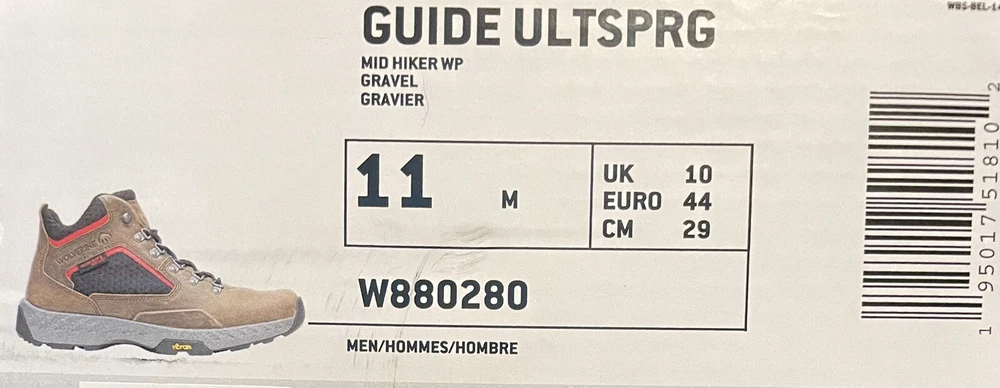 Brand New No shoebox Size 11 medium width Wolverine Guide UltraSpring Mid Hiker Waterproof Gravel Men Boots W880280. Comfortable and stylish outdoor footwear for everyday use