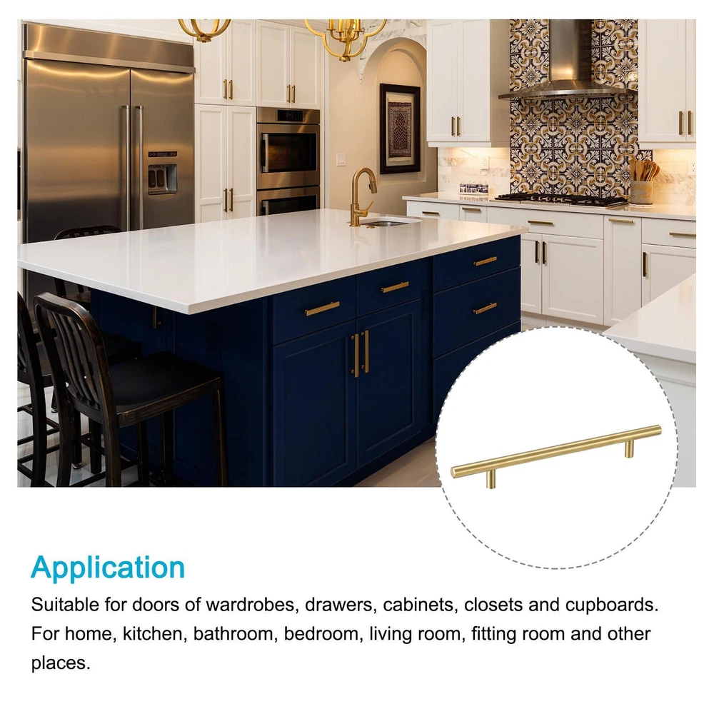 Document APPLY TO - Suitable for doors of wardrobes, cabinets, closets and cupboards. For home, kitchen, bathroom, bedroom, living room, fitting room and other places.SPECIFICATION:Material: Stainless SteelSurface Treatment: ElectroplatedOverall Dimension: 350mm(L)x32mm(H)/13.78"x1.26"T Bar Diameter: 12mm/0.47"Handle Base Diameter: 10mm/0.39"Mounting Hole Size: M4(D)x0.7mm(P)Mounting Hole Center Distance: 224mm/8.82"QUANTITY INCLUDED - 1 x T Bar Pull Handle; 2 x M4*25mm Screw; 2 x M4*45mm ScrewADVANTAGE - The pull handle is made of stainless steel with electroplated finish, smooth surface, hollow and lightweight yet strong and durable.Note: Please according to the thickness and width of your drawer to choose the proper size handle. T Bar Pull Handle 5'' Hole Center Distance, 0.39'' Dia 2Pcs,Stainless Steel Gold APPLY TO - Suitable for doors of wardrobes, cabinets, closets and cupboards. For home, kitchen, bathroom, bedroom, living room, fitting room and other places. SPECIFICATION: Material: Stainless Steel Surface Treatment: Electroplated Overall Dimension: 350mm(L)x32mm(H)/13.78"x1.26" T Bar Diameter: 12mm/0.47" Handle Base Diameter: 10mm/0.39" Mounting Hole Size: M4(D)x0.7mm(P) Mounting Hole Center Distance: 224mm/8.82" QUANTITY INCLUDED - 1 x T Bar Pull Handle; 2 x M4*25mm Screw; 2 x M4*45mm Screw ADVANTAGE - The pull handle is made of stainless steel with electroplated finish, smooth surface, hollow and lightweight yet strong and durable. Note: Please according to the thickness and width of your drawer to choose the proper size handle. Hot Item Payment 1.We accept eBay payment . 2.Payment must be received within 7 business days of auction closing. Shipping 1.We ship to your eBay or Paypal address. Please make sure your eBay and Paypal address is correct before you pay. 2.Items will be shipped within 1-3 business day when we received payment. 3.Delivery time depends on destination and other factors. Description Policy T Bar Pull Handle 5'' Hole Center Distance, 0.39'' Dia 2Pcs,Stainless Steel Gold APPLY TO - Suitable for doors of wardrobes, cabinets, closets and cupboards. For home, kitchen, bathroom, bedroom, living room, fitting room and other places. SPECIFICATION: Material: Stainless Steel Surface Treatment: Electroplated Overall Dimension: 350mm(L)x32mm(H)/13.78"x1.26" T Bar Diameter: 12mm/0.47" Handle Base Diameter: 10mm/0.39" Mounting Hole Size: M4(D)x0.7mm(P) Mounting Hole Center Distance: 224mm/8.82" QUANTITY INCLUDED - 1 x T Bar Pull Handle; 2 x M4*25mm Screw; 2 x M4*45mm Screw ADVANTAGE - The pull handle is made of stainless steel with electroplated finish, smooth surface, hollow and lightweight yet strong and durable. Note: Please according to the thickness and width of your drawer to choose the proper size handle. Hot Item Payment 1.We accept eBay payment . 2.Payment must be received within 7 business days of auction closing. Shipping 1.We ship to your eBay or Paypal address. Please make sure your eBay and Paypal address is correct before you pay. 2.Items will be shipped within 1-3 business day when we received payment. 3.Delivery time depends on destination and other factors.