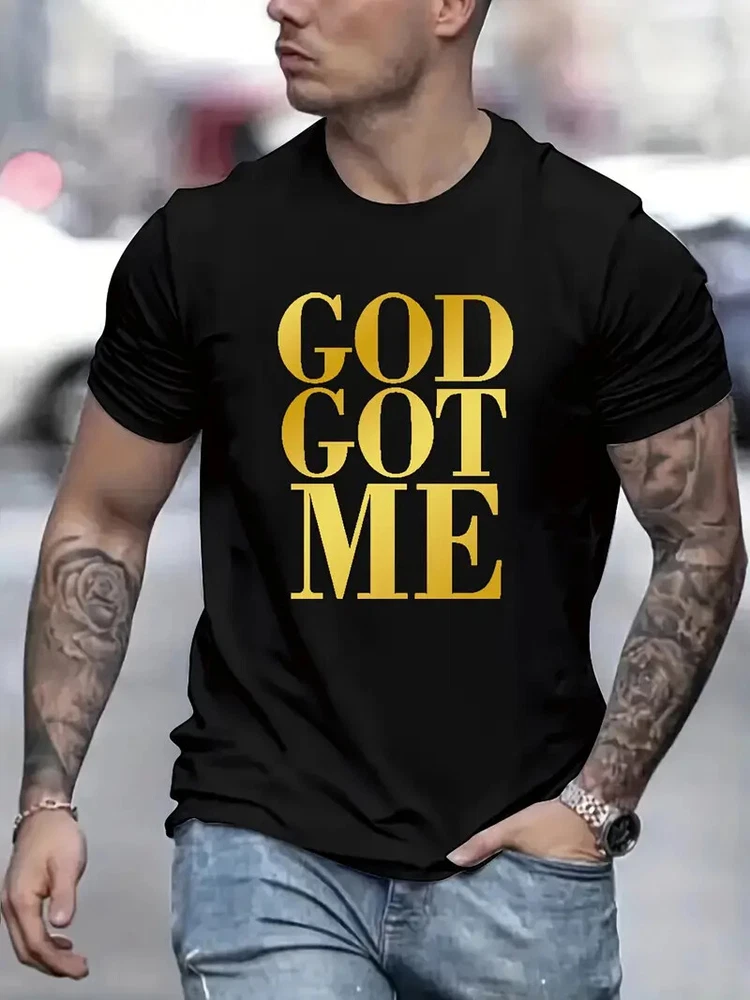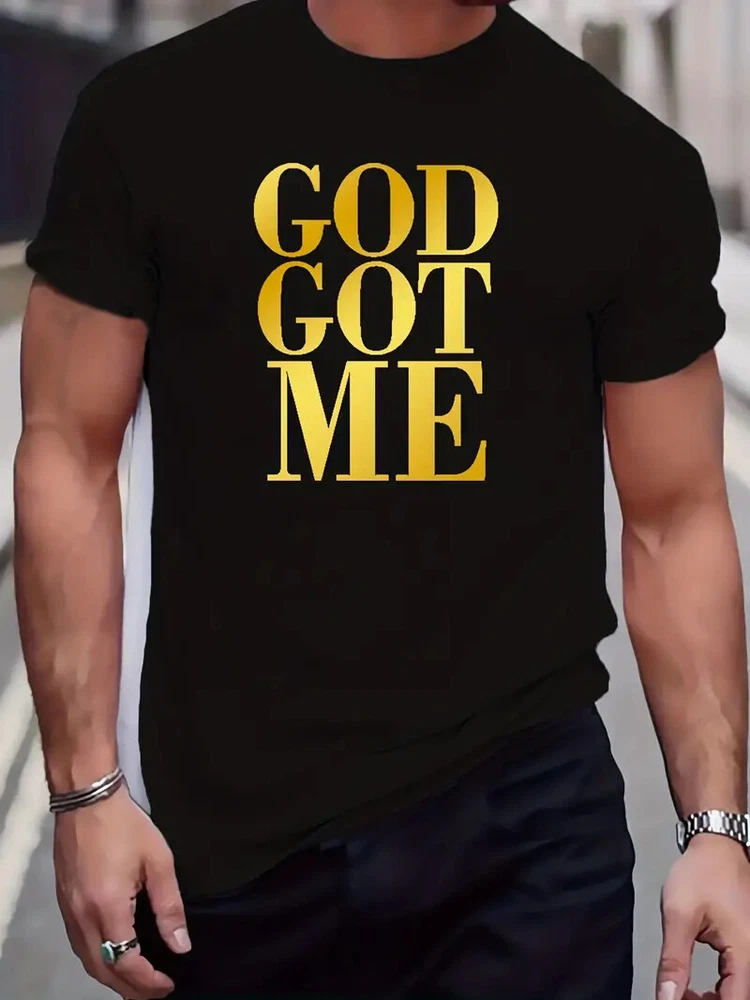 T Shirts God Got Me Graphic Print Black Gold Casual Short Sleeve Men Fashion Tee Vintage Round Neck M, L, XL, 2XL, 3XL - Ultra Soft & High Quality Material for Comfort and Durability - Machine Washable, Easy Care - Smooth & Lightweight Fabric for Sport Performance - Shrink Resistant Material Wicks Sweat & Dries Fast - Super Fast Shipping from USA