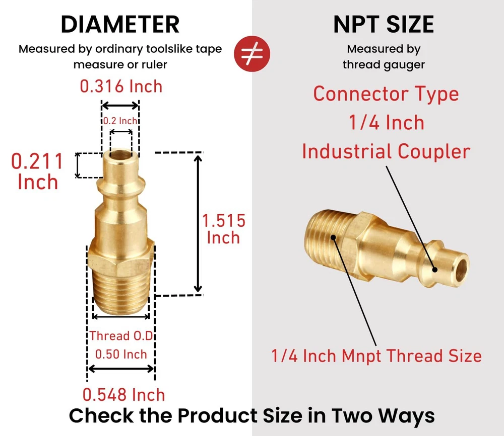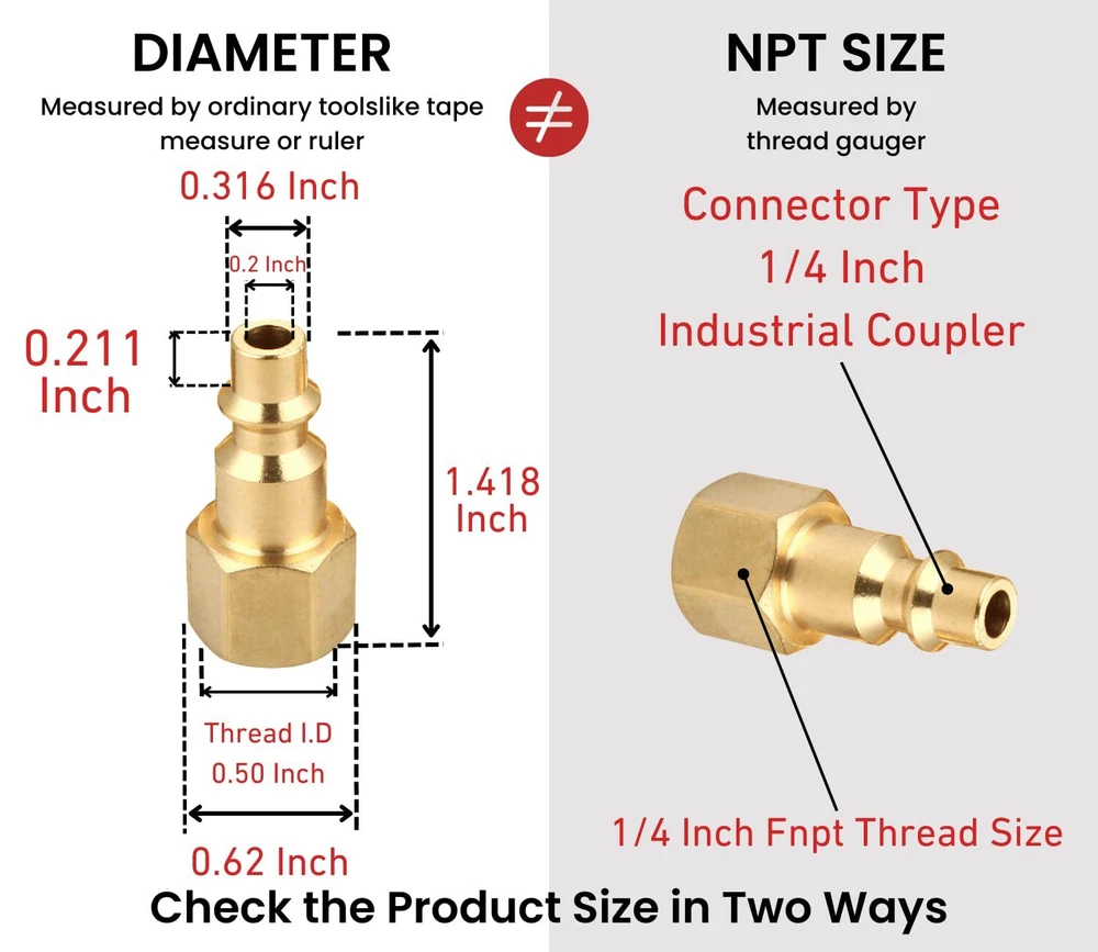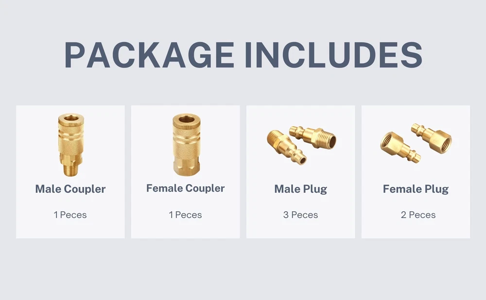 T TANYA HARDWARE Air Hose Fittings Quick Connect Brass Air Coupler and Plug Kit, Industrial Type D, 1/4 Inch NPT Air Compressor Fittings, (7 Piece) Industrial Type: Suitable for Industrial, M or D type couplers, interchangeable compatible with most manufacturers, 1/4 Inch NPT, 4 Ball Material: High quality brass durable and non rusting is more wear resistant than aluminum Application: Use on professional jobsites, in automotive shops or at home in the garage, and common use to air fitting kit for air tools, air compressor, air nailer, air blow gun, pressure washer, air hose Size: Quick and easy connect system, optimal sealing and high efficiency,1/4 npt thread, 1/4 inch basic body size Max Pressure: 300 psi Industrial Type: Suitable for Industrial, M or D type couplers, interchangeable compatible with most manufacturers, 1/4 Inch NPT, 4 Ball Material: High quality brass durable and non rusting is more wear resistant than aluminum Application: Use on professional jobsites, in automotive shops or at home in the garage, and common use to air fitting kit for air tools, air compressor, air nailer, air blow gun, pressure washer, air hose Size: Quick and easy connect system, optimal sealing and high efficiency,1/4 npt thread, 1/4 inch basic body size Max Pressure: 300 psi Shipping from the USA All of our products are shipped from the USA, ensuring quick delivery to your destination. Payment We offer the following payment methods: PayPal, credit card, bank transfer, and eBay's secure payment system. Free Shipping & Free Returns Shipping within the USA is FREE. Additionally, any return is absolutely free for you. Risk-Free Purchase You have the option to return an item within 30 days without any justification. We cover the return shipping costs! Fast Shipping We ship immediately upon receipt of payment. Generally, the package is delivered within 2-3 days in the USA. If it takes longer, we will contact you. Quality and Costs Made in Europe, USA, China No customs fees or additional charges Total satisfaction guarantee Invoice with declared VAT available upon request in .pdf format Feedback Your feedback is very important to us. After you pay for your purchase, you will automatically receive positive feedback from us.