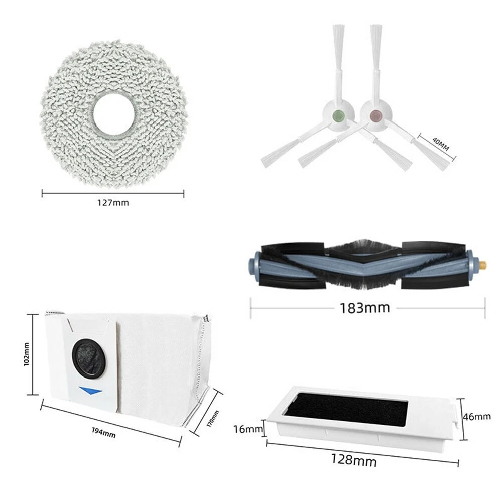 Replacement Parts For T20 /T20 PRO/T20 MAX Vacuum Cleaner Parts T2Z5 new, high-quality materials, well-made, , and highly compatible with the equipment. clean accessories keep your home robot at performance. Accessory contents are easily removed and replaced as part of routine maintenance. Also reduces the infiltration of dust, pollen and other into the air you breathe. In order to achieve the best cleaning and filtering effect, cleaning accessories should be replaced every 2-3 months according to the frequency of use. The function of the sweeping robot filter is to filter the dust, dirt and other impurities inhaled by the sweeping robot to keep the robot clean and operate normally. The filter also prevents dust and dirt from entering the robot's motors and other parts, extending the life of the robot The main function of the roller brush of the sweeping robot is to clean the dust and debris on the ground. When the roller brush rotates, it can push the dust and debris on the ground to the suction port, so that the robot can clean the ground more effectively. Colour:As Shown Material:plastic Package Contents: 1 x main brush 4 x side brush 2 x filter 4 x mop cloth 3 x dust bag