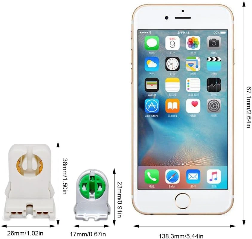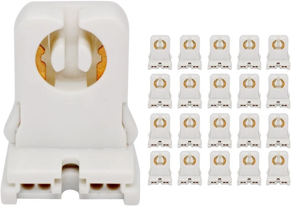 T8 LED Fluorescent Tube Lamp Holder Tombstone, 20 Count (Pack of 1), White Product Details Brand: Night Blazers Material: Polybutylene Terephthalate (PBT) Color: White Base Type: Medium Product Dimensions: 1.02"W x 1.5"H Mounting Type: Ceiling Mount or Wall Mount Voltage: 230 Volts Manufacturer: Night Blazers Part Number: T8-socket Item Weight: 0.423 ounces Item model number: HM-19307 Is Discontinued By Manufacturer: No Size: 20 Count (Pack of 1) Pattern: T8-20 Shape: T8 Power Source: AC Item Package Quantity: 20 Special Features: Lightweight Usage: Fine Finish Batteries Included?: No Batteries Required?: No Brand: Night Blazers Material: Polybutylene Terephthalate (PBT) Color: White Base Type: Medium Product Dimensions: 1.02"W x 1.5"H Pack of 20 Units,high compatibility Bi-Pin socket for T8 LED, fluorescent lamps Multiple uses,easy to use, hassle-free installation and standby application Small size, light weight, easy to install Weight:12g/pc ; Size, 2.6 x 1.0 x 3.8cm Ideal to replace the old or damaged socket for your T8 light