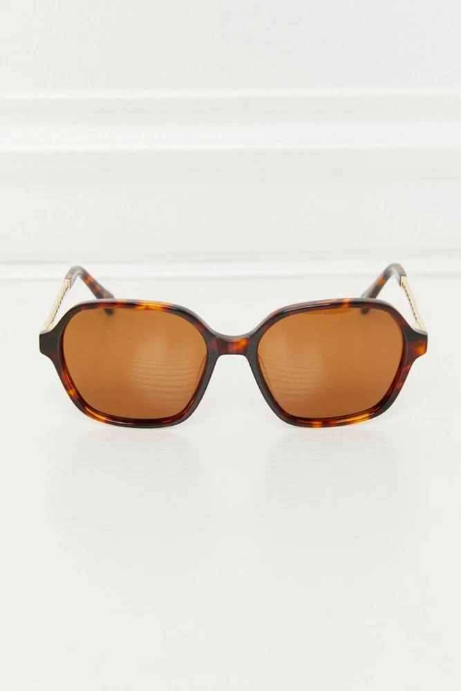 Includes: Case Features: UV400 Shape: Square Frame material: Acetate Temple material: Metal, acetate Lens material: TAC polarization Imported Product measurements: Bridge width: 0.67 in (1.7 cm) Temple length: 5.5 in Lens width: 2.1 in Lens height: 1.8 in Frame width: 5.5 in