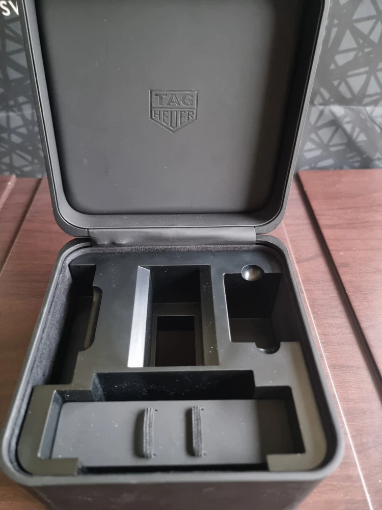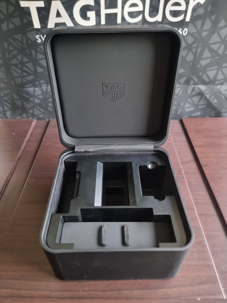 TAG heuer original Connected watch box the box is used. the lid is attached but as the images show the back brackets are loose or undone. Please see images This is a No reserve auction. please only bid if you are sure. Thank you code: 00A1