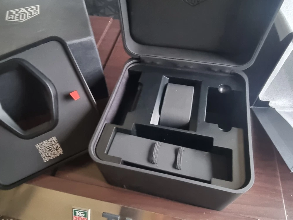 This TAG Heuer Connected watch box is a great find for collectors or owners needing a replacement case. The lid stays secure, but the back brackets are slightly loose—easy to fix if needed. Sold as-is, so check the photos carefully before bidding. Perfect for keeping your luxury watch safe!