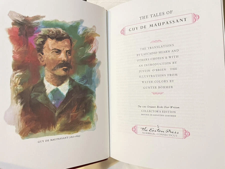 TALES OF GUY DE MAUPASSANT Easton Press 1977 Hardcover Leather Ed 100 Greatest Books New Mint THE TALES OF GUY DE MAUPASSANT by Guy De Maupassant Easton Press © 1977 From the 100 Greatest Books Ever Written Series Guy de Maupassant was a 19th-century French author who wrote over 300 short stories and six novels. He is widely regarded as one of the greatest masters of the short story form and a representative of the Naturalist school of literature. Collector's Edition Genuine Leather Bound Hardcover Mint Condition, never read, bookmark is in original position and fold! Printed and bound in the United States I am helping liquidate an estate for a friend. Her husband was an avid collector of books. I have hundreds to list, many rare and hard to find books. Please check back often as I will be listing new ones every day. Feel free to ask if you are looking for anything in particular. I will be listing many Folio Society books as well as the entire collection from the 100 Greatest Books ever written by Easton Press. Please email me with any questions. I will respond back quickly. I describe item conditions to the best of my ability and will always point out any flaws or defects that I am aware of. I am an EBay Seller with 100% Positive Feedback! Thank you. Bid with Confidence! See my other listings for more great items! Because I have had a slew of non paying and very slow paying bidders lately I will require payment within 2 days of the end of auction. However, if you need a different arrangement I will be more than happy to work with you, just let me know. INTERNATIONAL BUYERS ARE RESPONSIBLE FOR ALL CUSTOMS CHARGES, PORT CHARGES OR ANY TAXES DUE UPON RECEIPT OF THEIR PACKAGE. All my shipping charges include delivery confirmation. International shipping will be at actual cost. Thank you for bidding on my auctions. Your business is very much appreciated! txzj pxzj7585 txzj-11 txzj111 txzj115