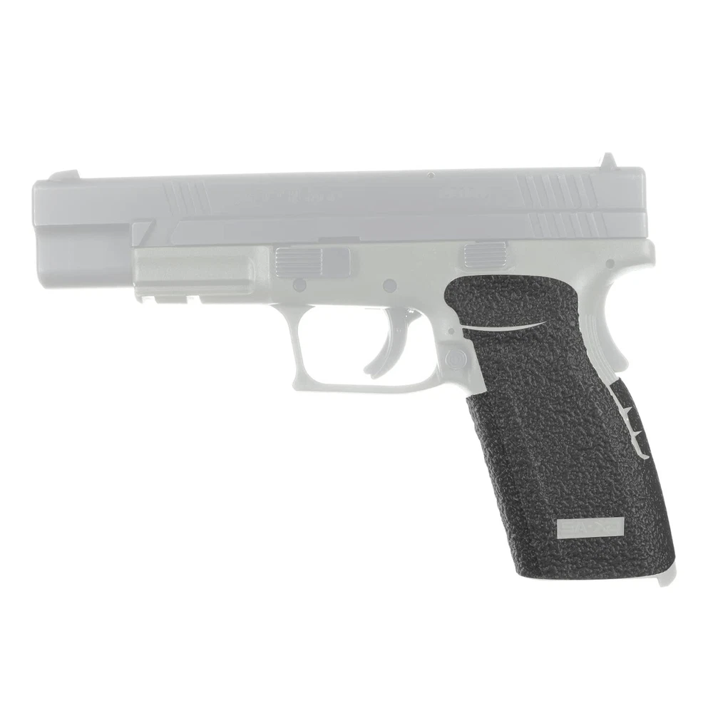 TALON Grips for Full Size Springfield XD 9mm/.357/.40 models with both the 4" and 5" barrels. This rear wrap grip is available in both granulate and rubber textures. This grip has full coverage on the side panels through the thumb rest, logo cutouts on each side, ample coverage on the backstrap and full coverage under the trigger guard. Improved Confidence, Safety & Control: Our stick-on pistol grip creates a functional and positive interface between you and your firearm Faster, More Accurate Follow-Up Shots: Improve your performance with better traction and reduced recoil; at less than 0.5mm thick, our non-slip pistol grips feel natural in your hands and are strong enough for competition US-Patented Gun Grip: Custom designed and manufactured for the Springfield Armory XD Sub-Compact handgun, our 100% USA-made wraparound gun grip offers maximum coverage and an OEM-quality fit and finish Trusted by Pros: Available in rubber or granulate textures, TALON grips are used by law enforcement officers, military personnel, competitive shooters and firearms enthusiasts; in fact, the NTOA has given us a 4.81 rating out of 5 Install in Minutes, Use for Years: Our comfortable black rubber grips last 1-3+ years and are built to enhance the comfort, features and performance of your Springfield firearm; they suit both concealed carry and open holster carry, as well as personal and home defense