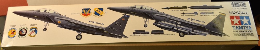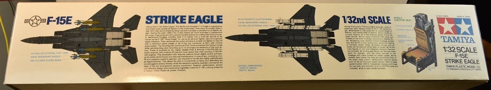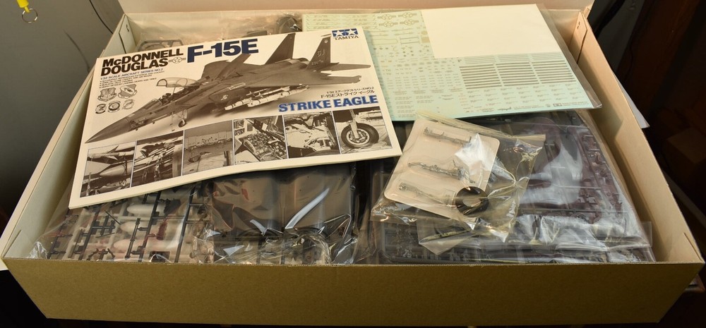 TAMIYA MCDONNELL DOUGLAS F-15E STRIKE EAGLE This kit is often usually seen on eBay for $150 plus. It sells from Tamiya’s website for $222.00! It is new-old (my father-in-law bought more airplane kits than he could finish in a literally a lifetime—see my other items from his hoard). The box cover is early as it shows the F-15 flying over Kuwait or Iraq during Desert Storm. I am guessing, but I think this was probably purchased by him in the 90s. The box has been opened, but all parts are still in unopened bags as well as all instructions, decals, etc. “Tamiya offers more than 3000 different products, both in the fields of precision static models and high performance radio control vehicles. These products are not only sold in Japan but also exported in vast quantities to the United States, Europe, South East Asia, and to many other parts of the world. The standard of excellence achieved by Tamiya is regarded as among the very finest in the world of model hobbies.” SPECIFICATIONS: Itm #60302 Scale: 1/32 McD-D F15E CONDITION: New, old stock— box has been opened, but all parts are still in unopened bags as well as all instructions, decals, etc. Everything is guaranteed to be complete. The box with the plastic missing is still nice with no creases, tears or wear beyond a few of its corners. BECAUSE MEDIA RATE SHIPPING IS FREE ON THE BOOKS I SELL, COMBINE THIS WITH OTHER ITEMS FROM MY EBAY STORE. I AM AN EXPERIENCED EBAY SELLER (23+ YEARS) AND SHIPPER WITH 100% (always!--since 1997!) FEEDBACK RATING. ALL ITEMS ARE CAREFULLY AND SECURELY PACKED TO REDUCE OR ELIMINATE DANGER OF CRUSHING AND OR WATER/MOISTURE DAMAGE. ALL BOOKS ARE SHIPPED IN STURDY BOXES WITH TRACKING AND DELIVERY CONFIRMATION INCLUDED. I PERSONALLY GUARANTEE ALL OF THE BOOKS, AUTOGRAPHS AND SIGNATURES ON BOOKS I SELL.