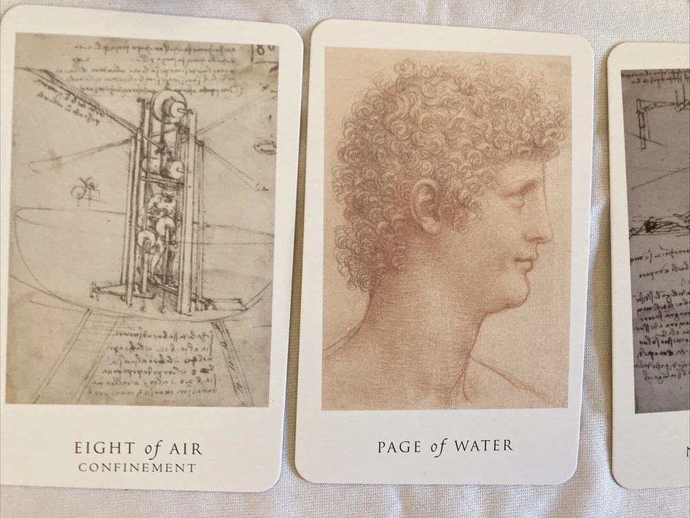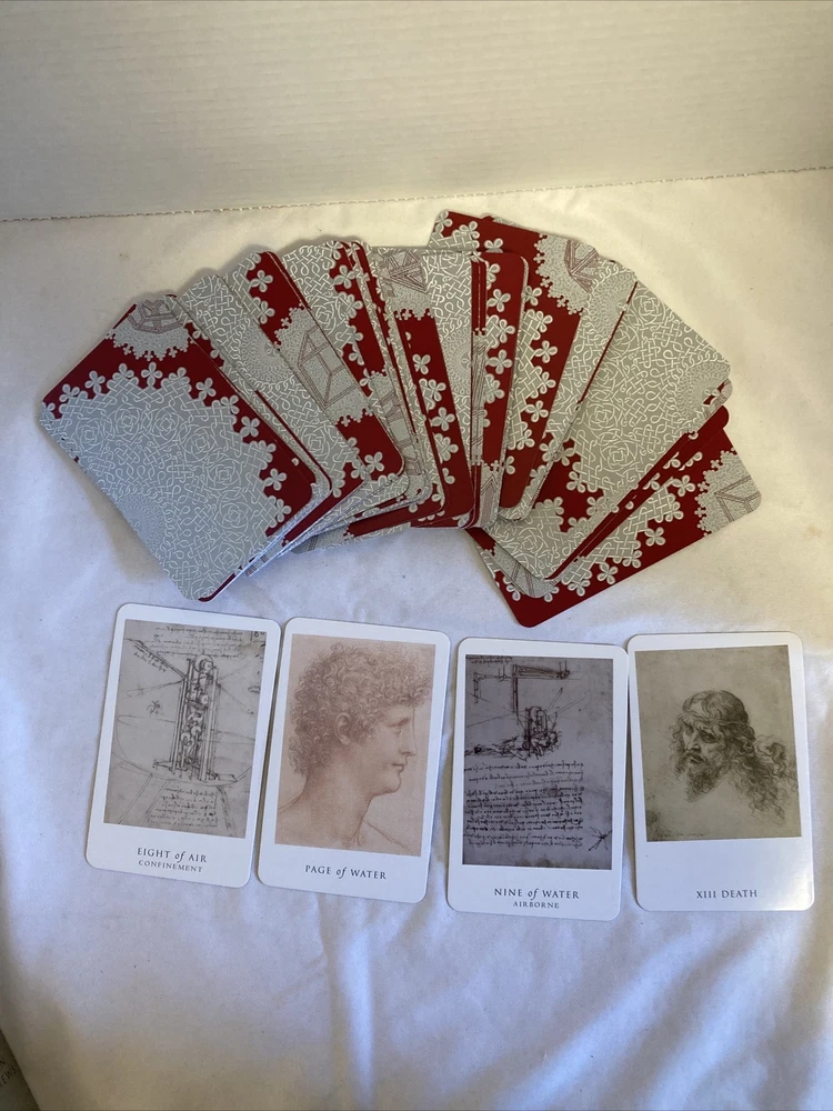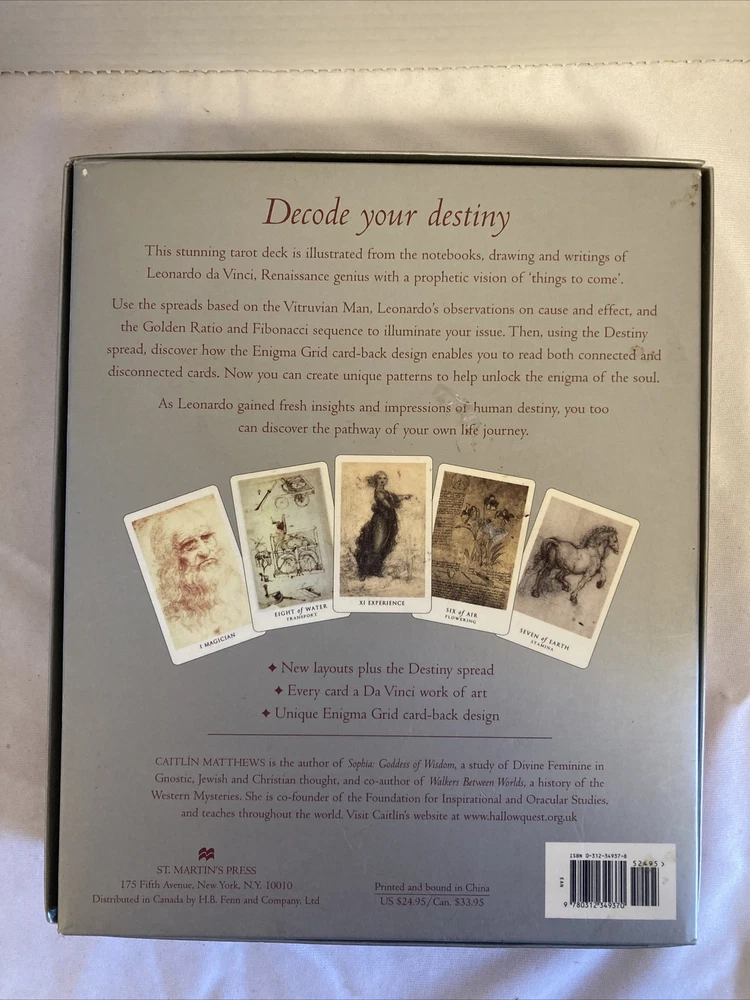 Da Vinci Enigma TAROT Cards SC BOOK Box Set 2005 First Edition Caitlin Matthews This stunning tarot deck is illustrated from the notebooks, drawings and writings of Leonardo da Vinci. Set is complete in original box with interior packaging. Contains: the soft cover first St Martin's edition 2005 book and 80 cards. Has been pre-enjoyed and there is one card with a 1/4" spot of paper loss on the edge - all others are in great condition as well as the book. Box shows some wear from storage. Please feel free to ask questions and take a look at my other items to combine shipments and save on postage cost. Shipping in US only.