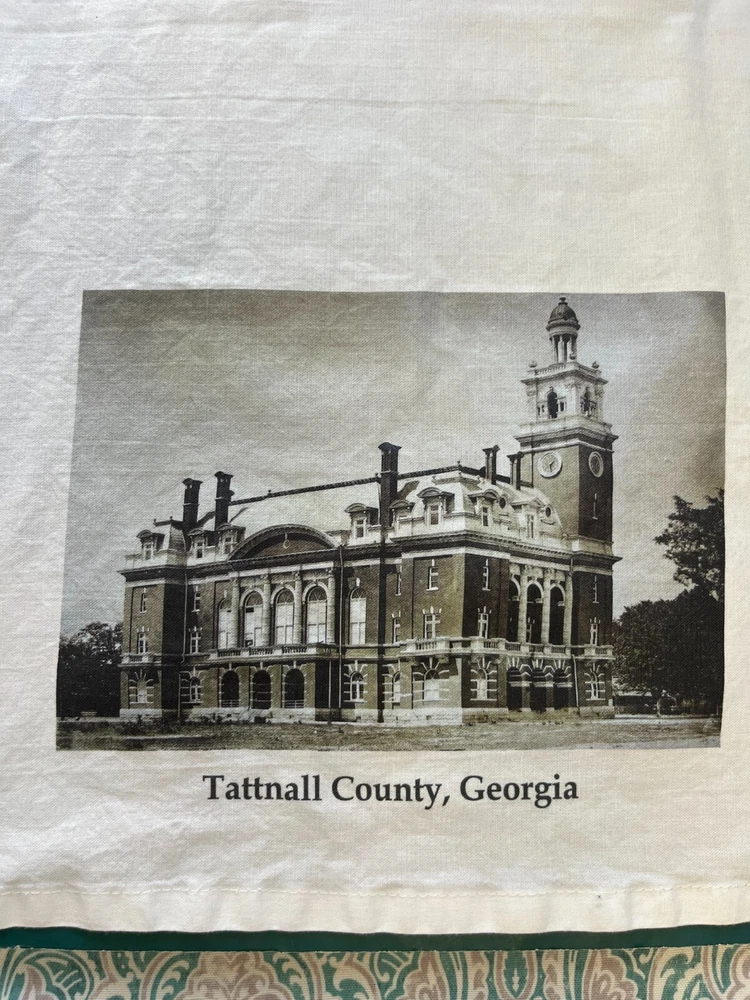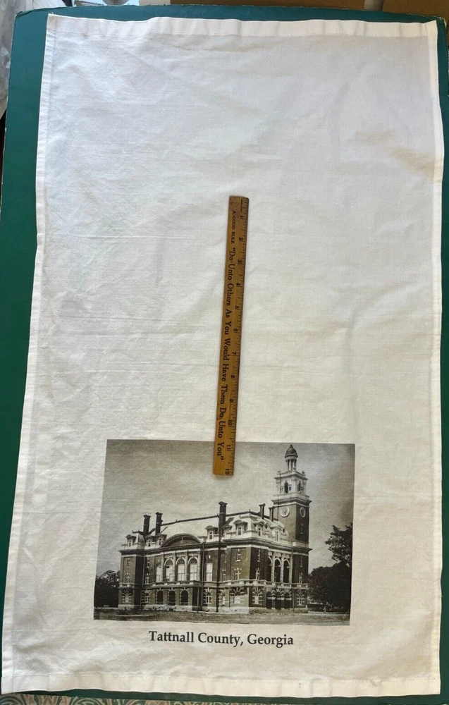100% Cotton Tea Towel that measures approximately 29" x 18". Features a vintage photo illustration on the front of the Courthouse in Tattnall, Georgia before it was renovated - this shows the mansard roof and the clock tower which were removed. It is in Very Good Condition. Made in the U.K. Payment is due within 4 days after the close of the auction or buy-it-now item. Accepted forms of payment are by Paypal. If you intend to buy multiple items please wait for a COMBINED INVOICE before you submit payment. The majority of our items are shipped via USPS. We use great care in packaging and shipping items to prevent breakage, bending and/or damage. We ONLY ship to the US ~ unless the item qualifies for eBay’s Global Shipping program. Any customs due is the responsibility of the buyer. Almost all of our items listed for sale are either antique, vintage and/or used. We provide very detailed descriptions of our items. If you have questions about a particular item, please email us before bidding. All items are sold "as is". A refund will be offered if we have somehow misrepresented an item. Please let us know if you are unhappy with a purchase. We attempt to respond to all questions and inquiries in a timely manner. Due to the amount of emails received, please ask any questions well in advance of the auction ending. Inquiries should be made at least 48 hours prior to the auction ending.