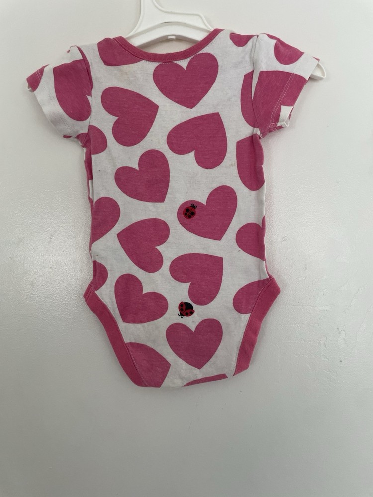 The Children's Place Baby Girl Allover Ladybug Hearts 100% Cotton Short Sleeve Bodysuit Pink 6-9M. Condition is pre-owned. Smoke free, pet free home. Shipped via USPS Ground Advantage. In fair condition. There are light stains on the front and back. Free of rips.