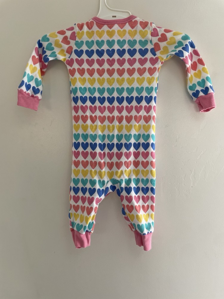 The Children's Place Baby Girl Colorful Rainbow Hearts 100% Cotton Long Sleeve 1-Piece White 0-3M. Condition is pre-owned. Smoke free, pet free home. Shipped via USPS Ground Advantage. In fair condition. There are stains on the front. Free of rips.