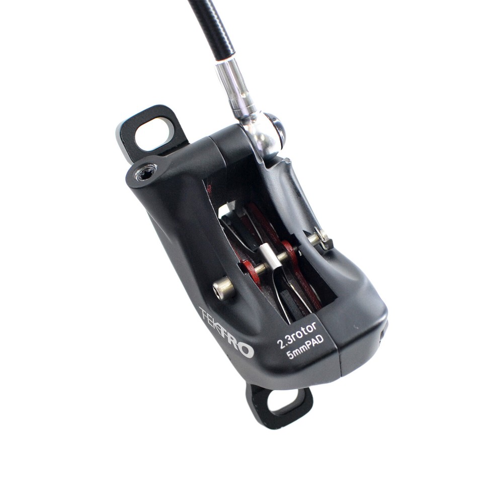 - Open system, 4 piston - With power cut-off sensor - Powerful and durable brake - Easy installation, adjustment and maintenance Lever - Forged aluminum lever / Cast bracket - 4 finger ball-end lever blade - Two-piece clamp - Reach adjustment - Finish : Black(as pic. shown) Caliper - 4 piston forged aluminum body - Free angle of hose connector for varied frames - Easy installation & maintenance from top - Finish : Black (as pic. shown) Hose Length: Front: 950 mm / Rear: 1750 mm Pads - 5mm pad - Q13RS - Overall balanced resin pad - Upload replacement Package includes: - Brake caliper x2 (Front and Rear) - Brake lever x2 (Left - front and Right - rear) - Hose x2 - Brake pad x2 SP ID: MH3104 Payment Shipping Returns Now eBay manages the end-to-end payments process. If you have any payment problem, please feel free to directly contact Ebay customer service. All items are shipped within 3 business days after received your payment. The delivery time depends on destination and other factors. If the item that your ordering is out of stock, we will refund the money to you. If you are not satisfied with this item, just simply notice us in 3 days after you received item, before you decide to ship item back, make sure to contact us via E-mail for shipping address. Shipping and handling fees are non-refund. Customers will be responsible for all return shipping cost. Returns without original package will not be accepted. designed by