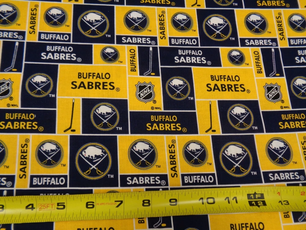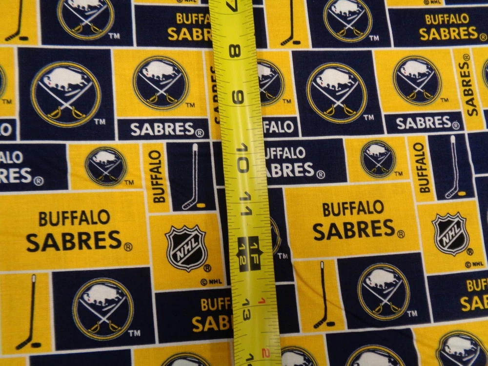 Up for sale is a 1 Yard piece (36" x 44") of BUFFALO SABERS " NHL FABRIC" IT IS 100% COTON FABRIC. We cut to order and this is the new square design. Thank you for your time