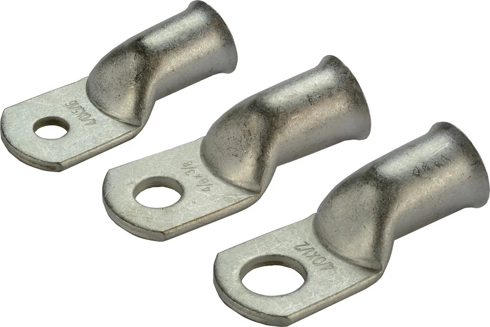 Visit Our Store Specifications Quantity: 1 Piece, 5 Pack, 10 Pack, 25 Pack, 50 Pack, or 100 Pack Material: Tinned Copper ( We also have bare copper! ) Wire Gauge: 6 AWG, 4 AWG, 2 AWG, 1 AWG, 1/0, 2/0, 3/0, or 4/0 Hole Size: 1/4", 5/16", 3/8", or 1/2" Warranty: Lifetime Warranty Data Sheet Download the full specs. LIFETIME WARRANTY View our lifetime warranty. Dimensions Gauge ØE (Hole Sizes) ØE ØD Ød W B L 6 AWG 1/4", 5/16", 3/8" 0.27 0.32 0.23 0.54 0.59 1.47 1/2" 0.52 0.67 0.55 4 AWG 1/4", 5/16" 0.27 0.37 0.29 0.54 0.61 1.53 3/8" 0.41 0.57 1/2" 0.52 0.67 0.59 2 AWG 1/4", 5/16", 3/8" 0.27 0.44 0.33 0.65 0.63 1.62 1/2" 0.52 0.67 0.6 1 AWG 1/4", 5/16" 0.27 0.46 0.36 0.65 0.63 1.72 3/8" 0.41 0.67 1/2" 0.52 0.75 1/0 1/4", 5/16", 3/8" 0.27 0.51 0.41 0.72 0.75 1.84 1/2" 0.52 0.83 2/0 1/4", 5/16", 3/8" 0.27 0.56 0.46 0.83 0.87 2.06 1/2" 0.52 0.83 3/0 5/16", 3/8", 1/2" 0.33 0.62 0.51 0.91 0.89 2.2 4/0 5/16", 3/8", 1/2" 0.68 0.56 1.02 0.94 2.38 Looking for bare copper lugs? Bare Copper Lugs 11 Months From Now... If it doesn't fit. If it looks funny. Or you just changed your mind. Even if it's opened, used or broken, we will still accept your return and pay shipping both ways. No restocking fee. Up to 1 year. Free Shipping To Lower 48 States Features Precision Fit. High-tolerance dies are used in the molding process. Flared Opening for easy wire insertion. Ships from Stock. Most orders arrive in 2 to 5 business days. Lifetime Warranty. Don't choose a product that will degrade or fail prematurely. HIGH Temp Resistance. Won't degrade in high temperature conditions. High Electrolytic Grade Copper Terminals outlast and outperform brass and aluminum models. Closed End Construction. When used with adhesive-lined shrink sleeve, conductor corrosion is prevented by sealing out moisture. As an OEM, we use many of the products we sell. As a result, only high quality materials are offered to you. RELATED ITEMS HEAT Shrink Tubing From $4.25 Diameters: 1/8, 3/16, 1/4, 5/16, 3/8, 1/2, 9/16, 3/4, 1, 1.18, 1.5, or 2 in RING TERMINALS From $3.85 Bare & Tinned Copper 6 AWG - 4/0 1/4". 3/8", 5/16", 1/2" HAMMER CRIMPER $17.50 8 to 0000 (4/0) AWG (CU) Universal Indent Die 5 Year Warranty WELDING CABLE from $9.50 6 to 0000 (4/0) AWG 5 ft to 1000 ft Red and Black Electrician's Tools TH0001 HD Cable Cutter $31.49 Cuts up to 4/0 Forged blades 12" Handles TH0002 HD Cable Cutter $36 Cuts up to 500 MCM Forged blades 18" Handles TH0003 HD Cable Cutter $45 Cuts up to 750 MCM Forged blades 24" Handles TH0004 Hydraulic Knockout Punch $99 1/2" to 2 " Punch Set 9 US Tons 5 Year Warranty TH0005 Hydraulic Cable Crimper $99 6 AWG to 600 MCM (CU) 11 Ton Crimping Force 12 Die Sets TH0006 Hydraulic Cable Crimper $79 12 to 00 (2/0) AWG (CU) 5 Ton Crimping Force 12 Die Sets TH0007 Hammer Indent Crimper $17.50 8 to 0000 (4/0) AWG (CU) Universal Indent Die 5 Year Warranty TH0012 Dieless Indent Crimper $55 8 to 0000 (4/0) AWG (CU) Universal Indent Die 5 Year Warranty TH0020 Dieless Indent Crimper $89 10 AWG - 400 MCM Universal Indent Die 5 Year Warranty TH0021 Sheet Metal Stud Punch $145 3 Die Sets 20 GA, 0.393" (1mm) Mild Steel TH0034 2 Speed Hydraulic Crimper $399 6 AWG to 750 MCM 12 Ton Crimping Force 12 Die Sets TH0037 Hydraulic Knockout Punch $275 1/2" to 4" Punch Set 13 US Tons 5 Year Warranty TH0247 HD Cable Cutter $39 Cuts up to 3/0 12" Handle TH0248 HD Cable Cutter $55 Cuts up to 50 MCM 18" Handle TH0249 HD Cable Cutter $69 Cuts up to 750 MCM 24" Handle Shipping Domestic Lower 48 States: FREE! Local Pickup Available: FREE!* International Calculated by location. Orders are usually processed and shipped within 24 to 48 hours of receipt of your payment. Please provide us with a physical shipping address (failing to do so may delay your order). We may ship an order by a different courier at our discretion. If you need to receive an order within a guaranteed time frame, please contact us for rush options and expedited shipping. Import duties, taxes, and charges are not included in the item price or shipping charges. These charges are the buyer's responsibility. Please check with your country's customs office to determine what these additional costs will be prior to bidding/buying. Furthermore, we will not mark merchandise values below value or mark items as "Gifts". *Local Pick Up is available at our Fremont CA location, Monday through Friday 9:00 a.m. to 5:00 p.m. Please contact us ahead to ensure that your item is in stock at our location before pick-up. Payment & Returns Payment TEMCo accepts the following payment methods: PayPal, Visa, MasterCard, AMEX, Discover. We charge 9.75% sales tax for all orders shipping within California. Tax exemption is available if we are provided with a valid California resale certificate. Returns TEMCo allows for the return of products for 1 year from the date of purchase. Even if it's opened, broken, or used, we will still accept your return and pay shipping both ways. We will replace the item with an identical item or issue a refund for the value of the item. Customer feedback We strive to provide 5-star service. Shop with confidence! 100% Positive reviews We want nothing more for our buyers than to be 100% happy with their purchase. We strive to earn a 5-star rating from every purchase. When you receive your purchase, please take a moment to leave us a positive feedback. If there was something unsatisfactory about your purchase, please contact us before leaving feedback and we'll do what's necessary to remedy the problem and ensure your satisfaction! When your order ships from our warehouse, we will automatically leave you positive feedback. "I have always been delighted with the service from TEMCo." Your customer service, which is seldom needed, is wonderful, the staff knowledgeable and courteous. The shipping has been quite fast, which make my life easier... So, thank you, for the good experiences with the company! Rick C "I have ordered from TEMCo several times over the last 2 years and have alw