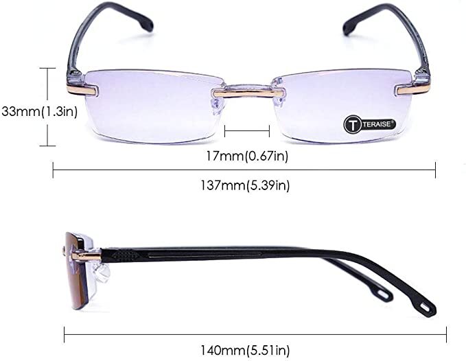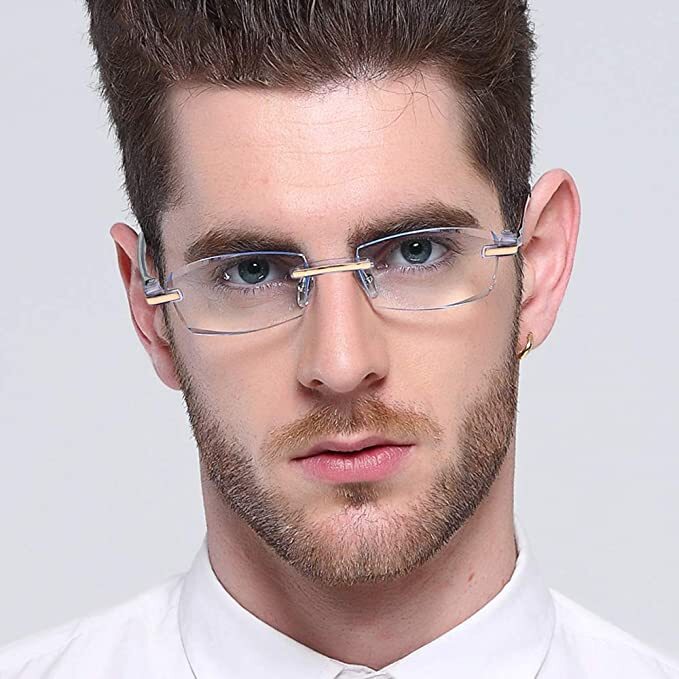 These glasses are a game-changer! The rimless diamond-cut design is sleek and modern, making them super lightweight and comfortable. The anti-blue ray coating really helps reduce eye strain, and the clarity is amazing—perfect for reading or screen time. They look so stylish that I get compliments every time I wear them. Definitely worth it!