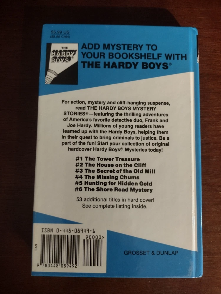 Genre: Juvenile Fiction gtin13: 0448089432 Format: Hardcover Publication Year: 1928 Original Language: English Topic: Action & Adventure / General, Mysteries & Detective Stories, Family / Siblings, General Author: Franklin W. Dixon Language: English Book Series: The Hardy Boys Ser. Type: Novel Narrative Type: Fiction Illustrator: Yes Item Length: 7.6 in Number of Pages: 192 Pages Item Weight: 8.1 Oz ISBN: 0448089432 Book Title: Hardy Boys Item Width: 5 in Publisher: Penguin Young Readers Group Country/Region of Manufacture: United States Item Height: 0.7 in
