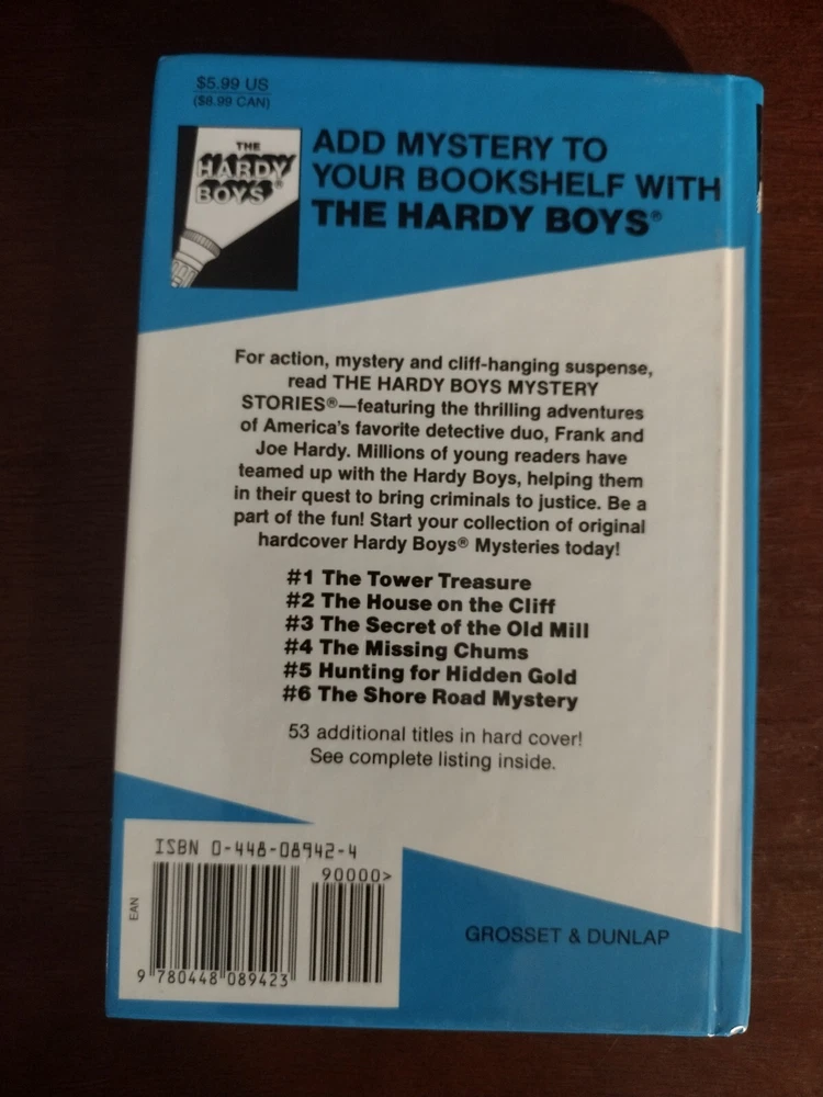 Number of Pages: 192 Pages Publication Year: 1928 ISBN: 0448089432 Topic: Action & Adventure / General, Mysteries & Detective Stories, Family / Siblings, General Item Width: 5 in Book Title: Hardy Boys Language: English Genre: Juvenile Fiction Publisher: Penguin Young Readers Group Country/Region of Manufacture: United States Format: Hardcover Item Height: 0.7 in Illustrator: Yes Author: Franklin W. Dixon Original Language: English Book Series: The Hardy Boys Ser. Item Weight: 8.1 Oz gtin13: 0448089432 Type: Novel Narrative Type: Fiction Item Length: 7.6 in