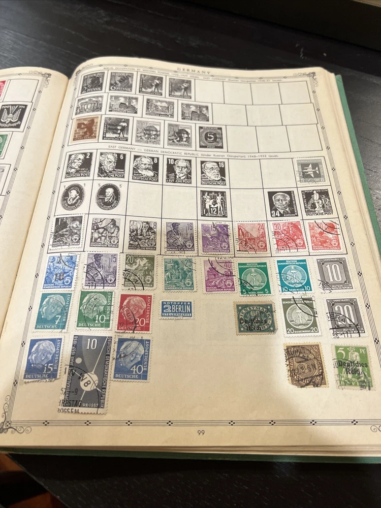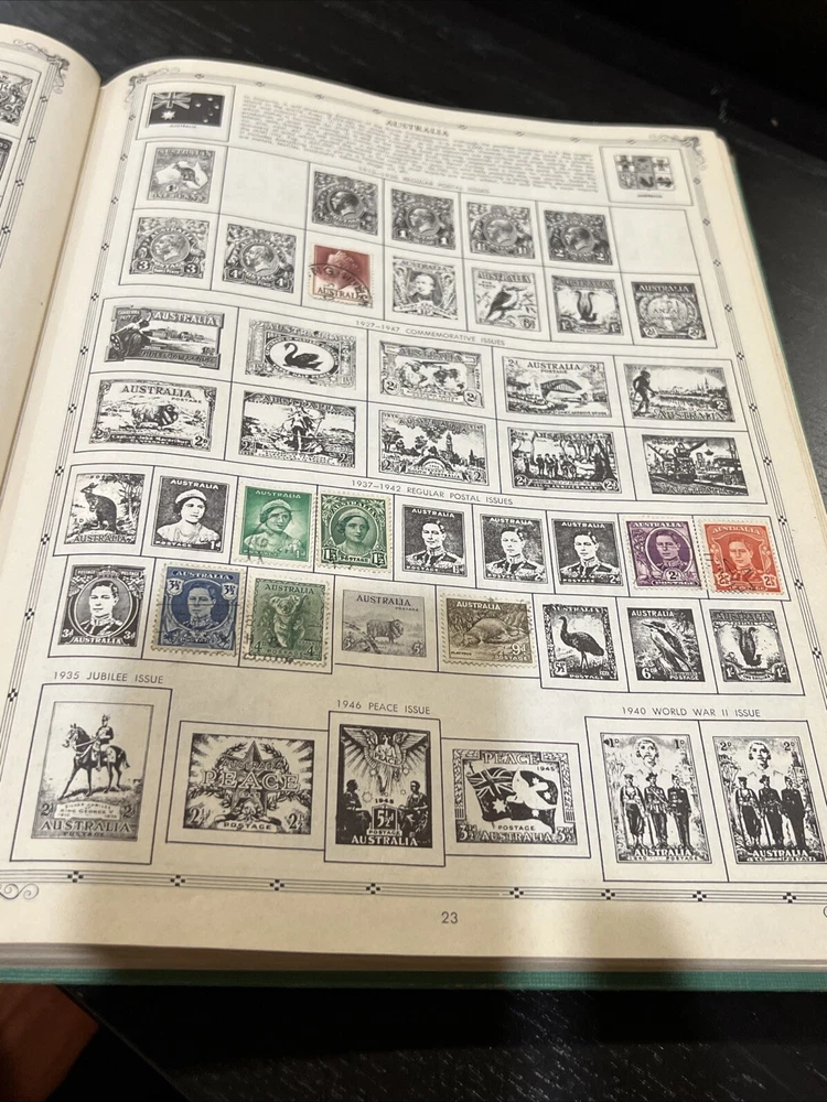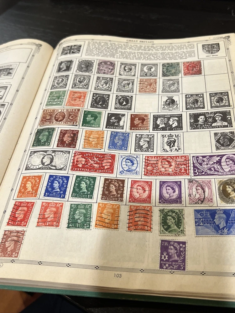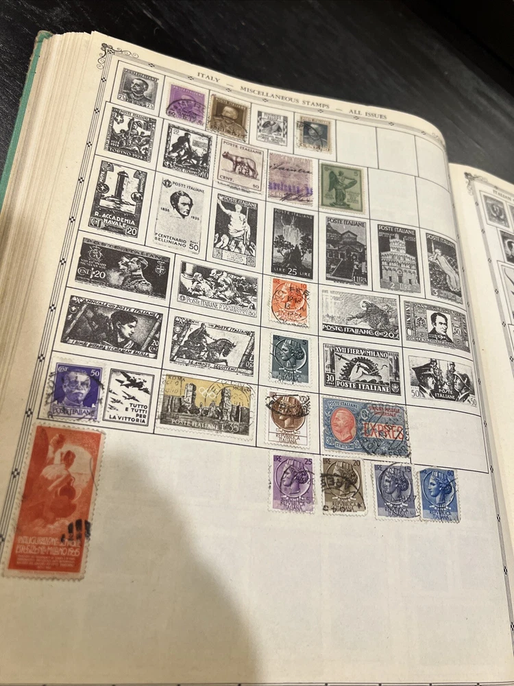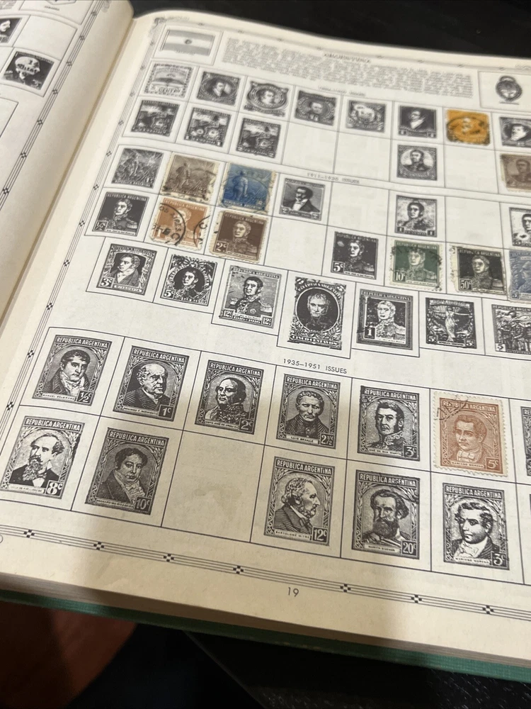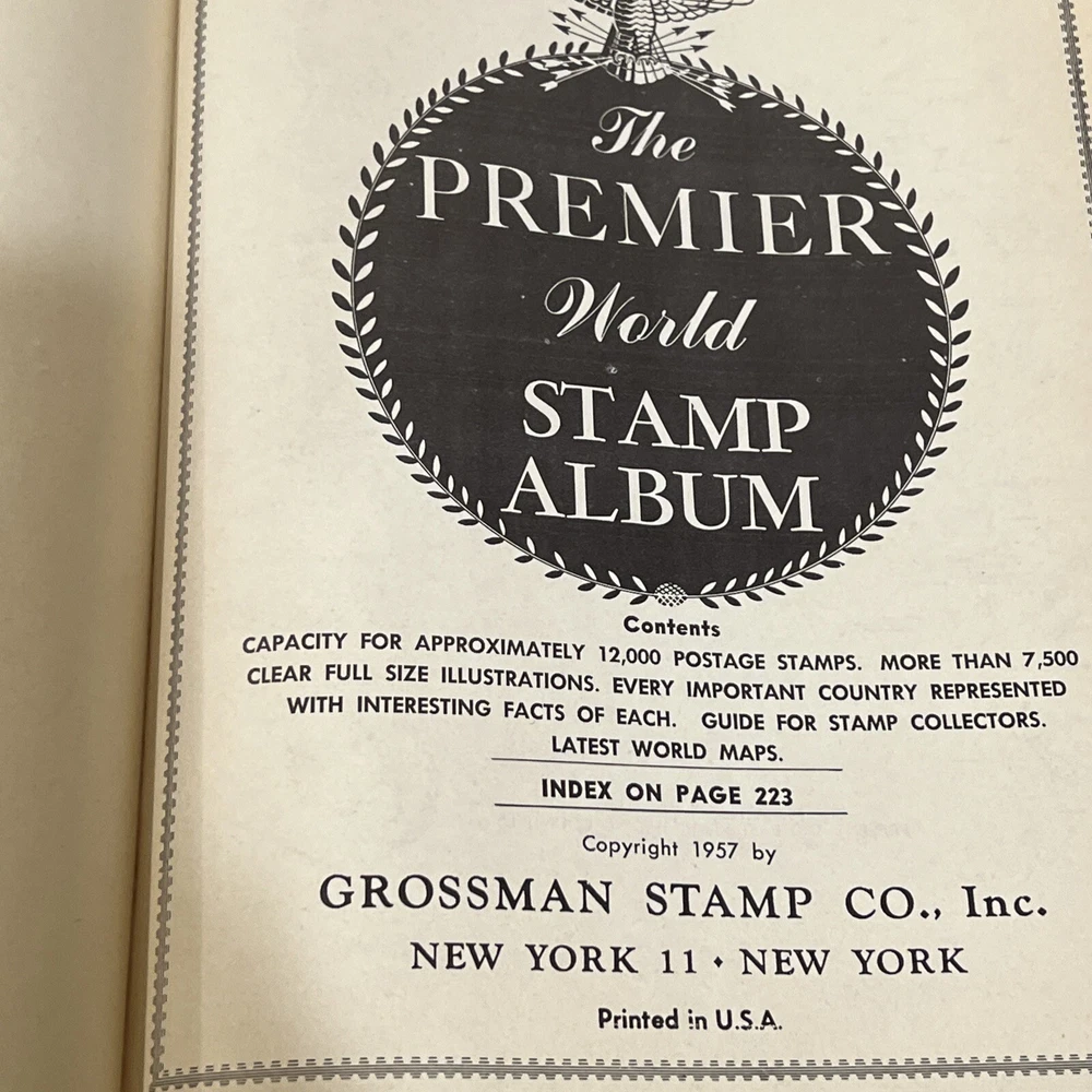 THE PREMIER WORLD STAMP ALBUM 1957 Grossman stamp co with 925 stamps Book shows signs of wear. Contains 925 +/- used world stamps. About 810 stamps in the book About 45 stamps loose About 70 stamps on a few separate pages. Visit my Ebay Store and search for antique, brass, bronze, vintage, pottery, boots, shoes, cashmere, linen, pillow shams, silk dress, gloves, belts, leather bags, Lululemon, ATHLETA,The Cashmere Project, Design History, Sorel Boho, Michael Aram, Ramy Brook, Robert Lee Morris, Fila, ED HARDY Garrett Leight, Veronica Beard, Theory, Mar Y Sol, NONCHALANT, Free People, Wolford, Perfect White Tee, PORTOLANO, Hotel Collection. Smoke free environment. Will Support Ukraine Ships quickly! Purchase with confidence - I stand by every one of my items and if you are not satisfied, I will do what it takes to make it right!
