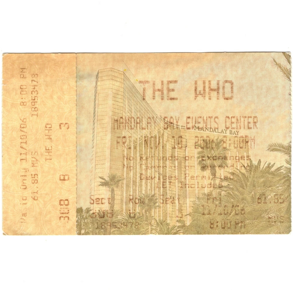 Offered is a rare original large box office concert ticket stub for The Who and The Pretenders show at Mandalay Bay Events Center, Las Vegas, NV. November 10, 2006. Endless Wire Tour. Ticket is used, and has tape on the back. Always Combined Worldwide Shipping! No Extra for multiple items won!
