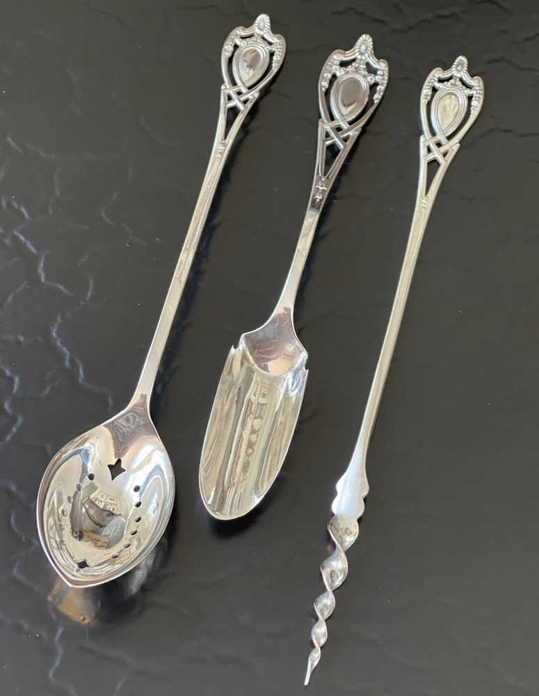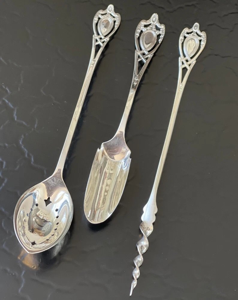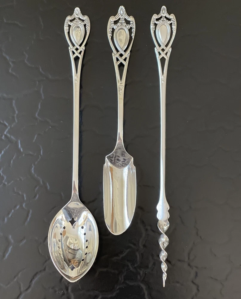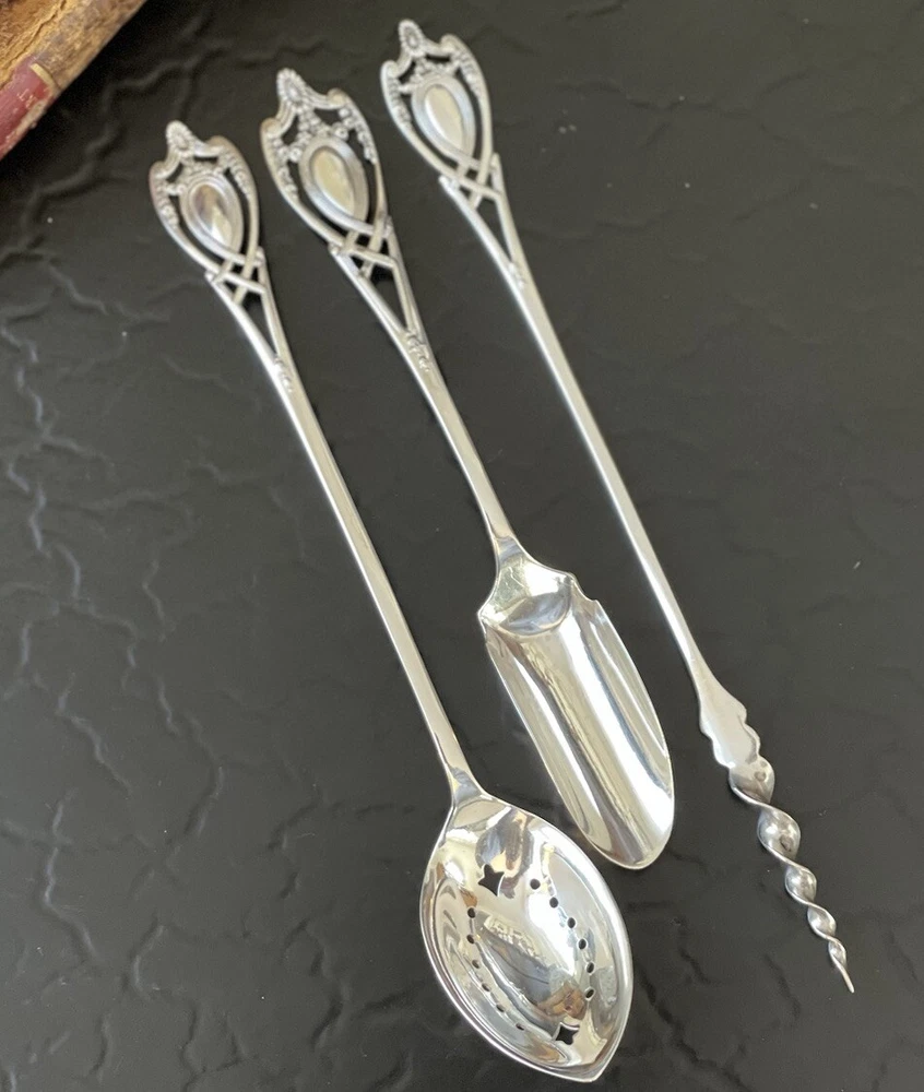 Stunning Set of THREE Rare Original Antique Lunt Monticello Sterling Silver Dining Serving Pieces β’ Olive Butter Cheese Set β’ Superb Stylish Examples β’ Kindly View Photo Gallery β’ 1.361 ozt Beautiful set of THREE fine extremely rare gleaming Lunt Monticello serving pieces, just perfect for your next celebration, party or holiday gathering. Glorious serving set includes one butter pick 6.5β, one pierced bowl olive spoon 6.4β, and one Stilton cheese scoop 5.5β. A stunning addition to any collection of American silver to be used and enjoyed for generations. Lightly hand polished to reveal luminous silver shine. Superb original examples in signature Monticello pattern by LUNT, c1908. Excellent antique condition with quality feel in hand. Sumptuous design featuring elegant classical cartouche motif. Sterile and ready to use. Happy Bidding!
