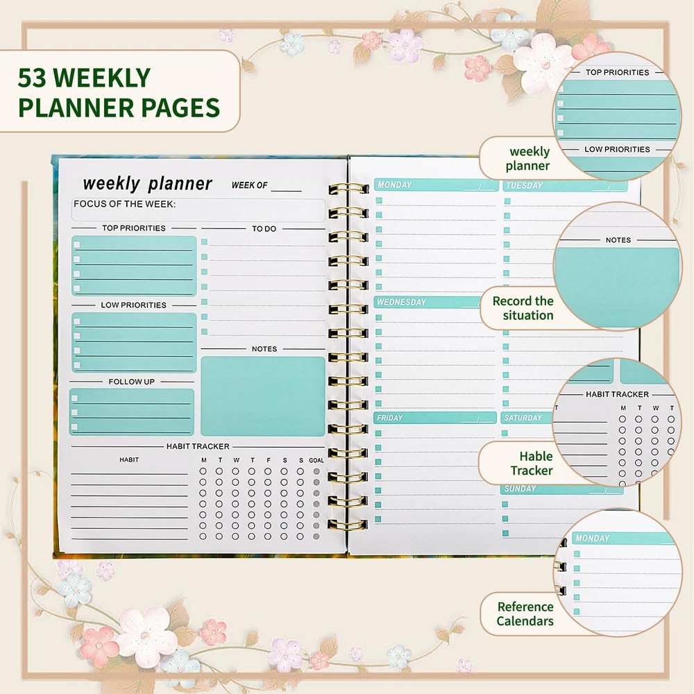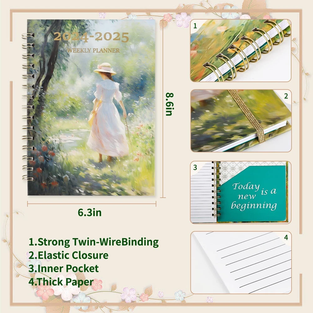 TIANFEI Monthly Planner 2024-2025 Academic Year Weekly and Monthly Planner, 6.3" x 8.6", Jan. 2024 - Dec. 2025, Spiral Bound with Elastic Closure, Inner Pocket (Green-3) Large Monthly Tabs: Each month is divided into two large monthly tabs for easy planning and organization. The tabs are marked with the current month and the remaining months, making it convenient to flip to the desired month. 2024-2025 Academic Year Calendar: This planner covers the academic year from January 2024 to December 2025, providing ample space for scheduling and tracking important events. The pages are undated, allowing you to start using it at any time during the year. Inner Pocket: The planner has an inner pocket on the front cover, perfect for storing receipts, notes, or other small documents. This keeps your important papers organized and easily accessible. Premium Quality: The planner is made from high-quality materials, including durable paper and a sturdy spiral binding. It is designed to last for an entire academic year and can withstand regular use. Wide Application: The TIANFEI Academic Year Weekly and Monthly Planner is perfect for students, teachers, professionals, and anyone who needs a planner to manage their schedule and tasks. It is suitable for use at home, office, or school. Large Monthly Tabs: Each month is divided into two large monthly tabs for easy planning and organization. The tabs are marked with the current month and the remaining months, making it convenient to flip to the desired month. 2024-2025 Academic Year Calendar: This planner covers the academic year from January 2024 to December 2025, providing ample space for scheduling and tracking important events. The pages are undated, allowing you to start using it at any time during the year. Inner Pocket: The planner has an inner pocket on the front cover, perfect for storing receipts, notes, or other small documents. This keeps your important papers organized and easily accessible. Premium Quality: The planner is made from high-quality materials, including durable paper and a sturdy spiral binding. It is designed to last for an entire academic year and can withstand regular use. Wide Application: The TIANFEI Academic Year Weekly and Monthly Planner is perfect for students, teachers, professionals, and anyone who needs a planner to manage their schedule and tasks. It is suitable for use at home, office, or school. Shipping from the USA All of our products are shipped from the USA, ensuring quick delivery to your destination. Payment We offer the following payment methods: PayPal, credit card, bank transfer, and eBay's secure payment system. Free Shipping & Free Returns Shipping within the USA is FREE. Additionally, any return is absolutely free for you. Risk-Free Purchase You have the option to return an item within 30 days without any justification. We cover the return shipping costs! Fast Shipping We ship immediately upon receipt of payment. Generally, the package is delivered within 2-3 days in the USA. If it takes longer, we will contact you. Quality and Costs Made in Europe, USA, China No customs fees or additional charges Total satisfaction guarantee Invoice with declared VAT available upon request in .pdf format Feedback Your feedback is very important to us. After you pay for your purchase, you will automatically receive positive feedback from us.