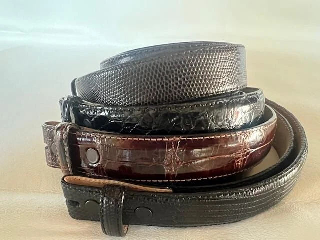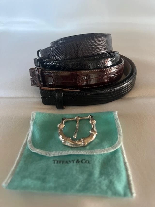 ALL PRE-OWNED *** ALL IN EXCELLENT CONDITION!!! *** 5 ITEMS TOTAL 1. VINTAGE TIFFANY & CO. STERLING SILVER BAMBOO BELT BUCKLE 1" WIDTH 1 3/4 LENGTH MARKED 1996 TIFFANY & CO. 925 2. BLACK GENUINE LIZARD BELT SIZE 30 MADE IN USA 3. BLACK GENUINE AMERICAN ALLIGATOR SIZE 30 MADE IN USA 4. BROWN GENUINE LIZARD BELT SIZE 30 (NO, MADE IN STATED, BUT USA AS WELL) 5. BROWN GENUINE AMERICAN ALLIGATOR SIZE 30 MADE IN USA