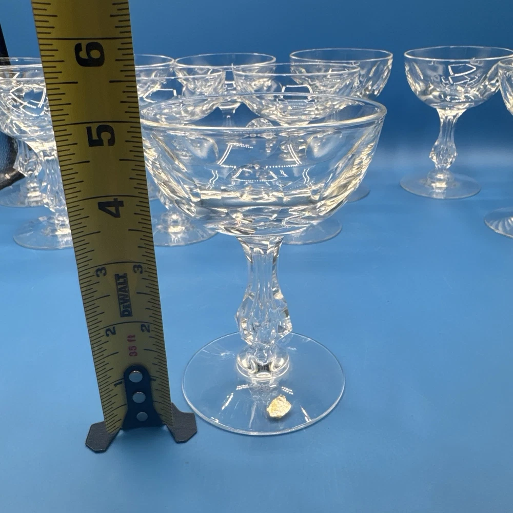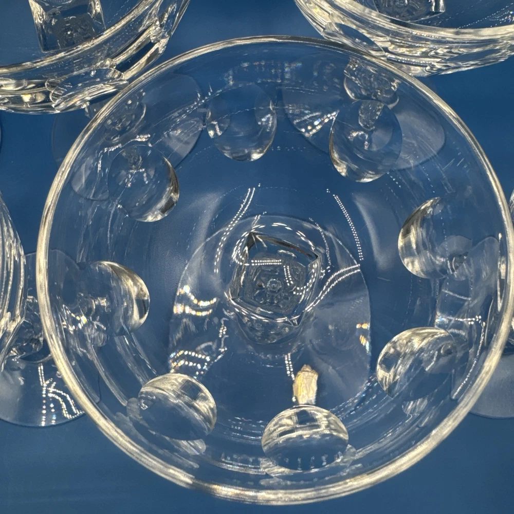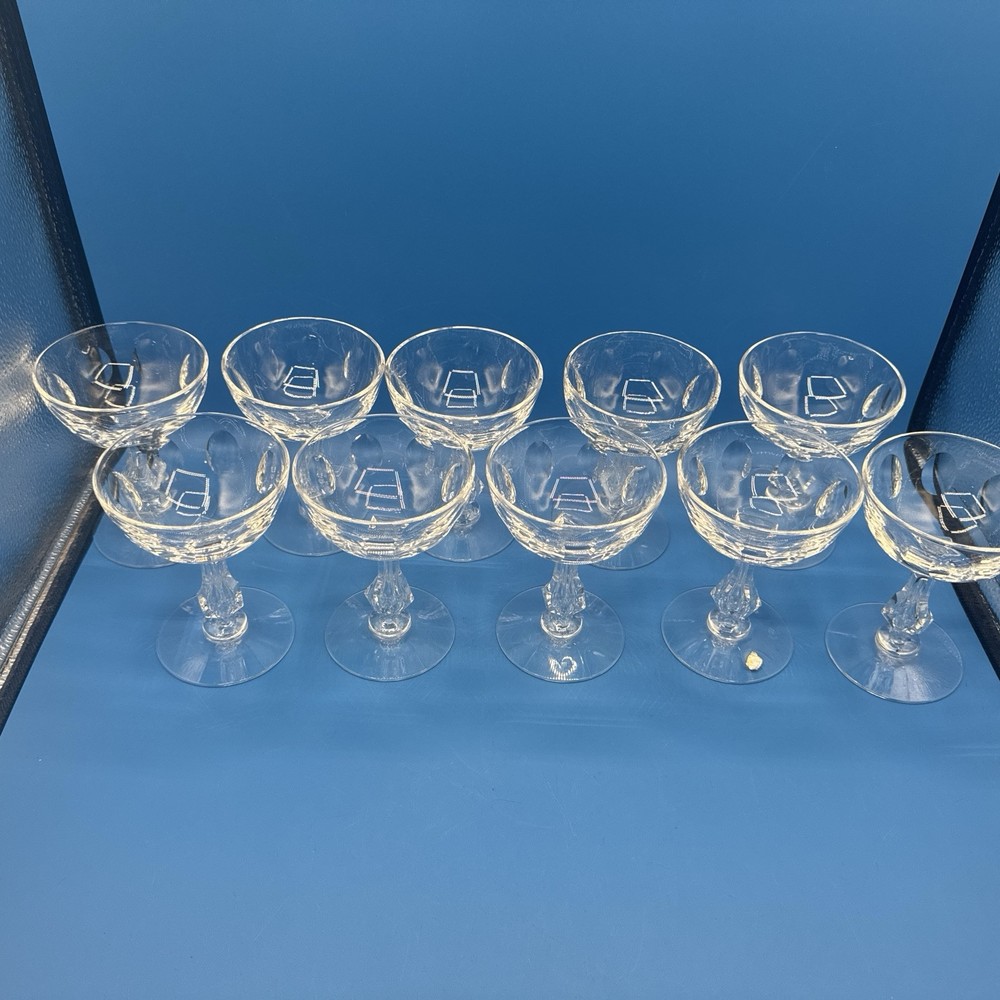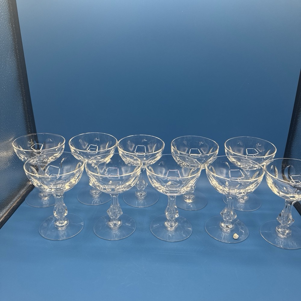 Elevate your toasting experience with the TIARA by Tiffin Franciscan Crystal Coupes. This lot of 10 sherbet glasses is a testament to classic elegance and superior craftsmanship. The clear crystal glass showcases your sparkling wines and desserts with a touch of sophistication, making each occasion a bit more special. Designed with a timeless aesthetic, these glasses are a versatile addition to your drinkware collection. Whether you're hosting a formal dinner or enjoying a quiet evening at home, these coupes are sure to impress with their fine detailing and premium build. Pre-owned excellent condition. No cracks or damages. No original box. Please check the pictures carefully as part of the description. Feel free to ask questions if you need more information before you buy it. Thank you for your interest C-11