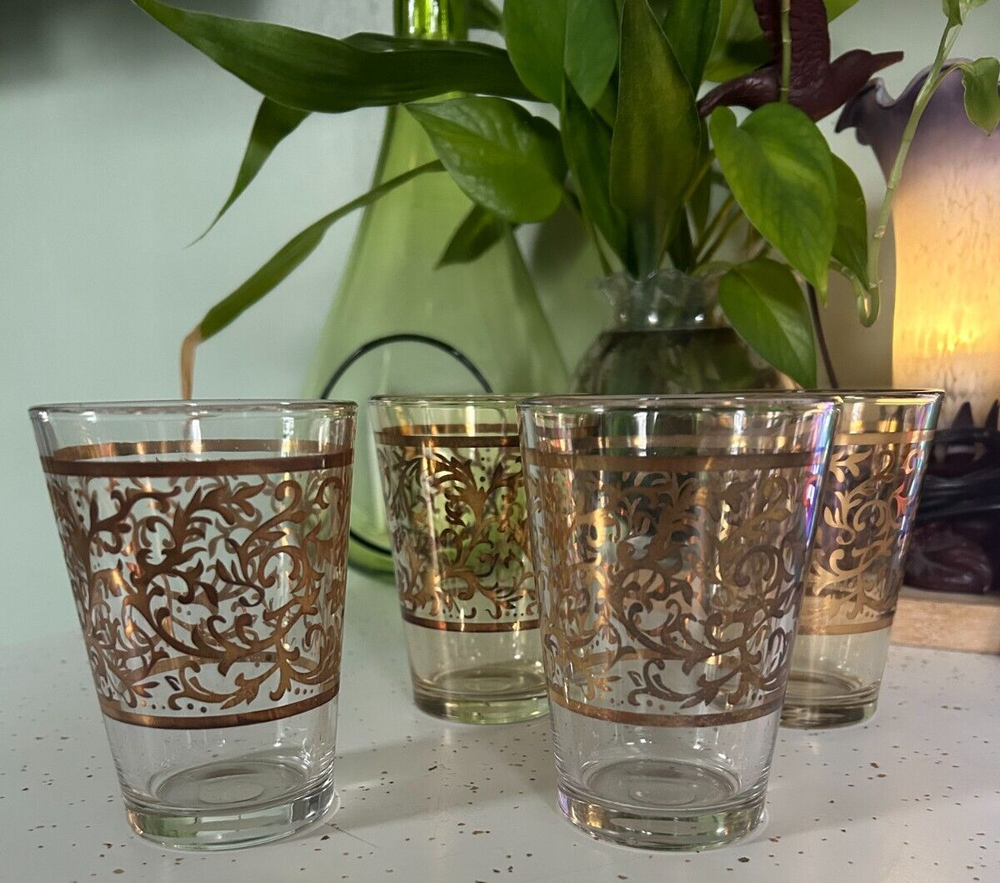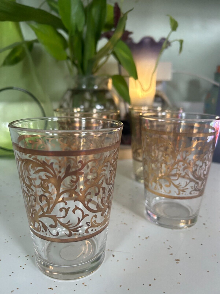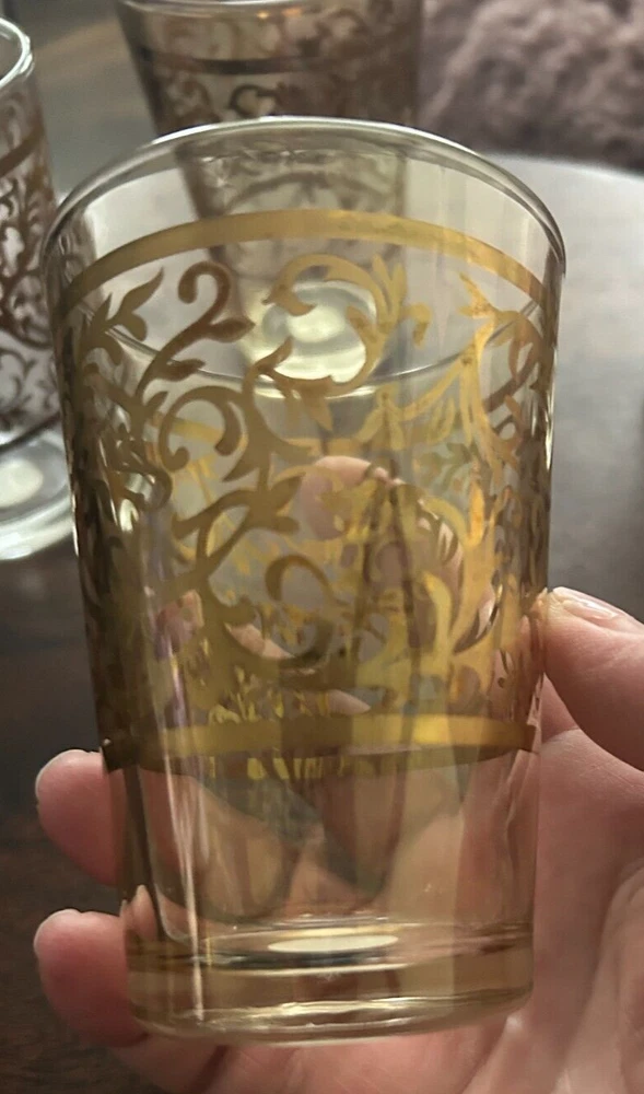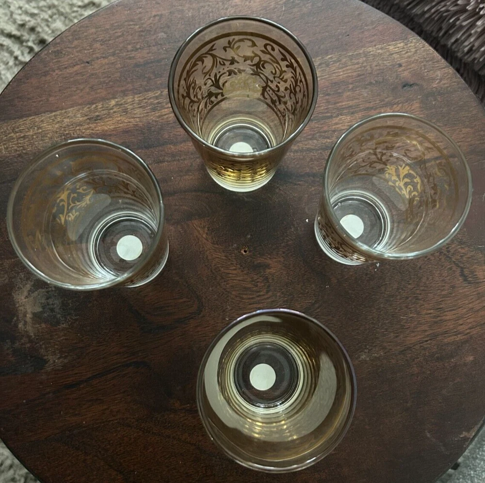 MEXICAN Cocoa/ Vanilla Gold Swirl Wine GOBLET Hand Blown HEAVY Stems
