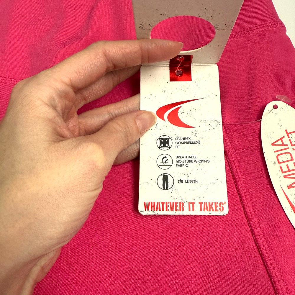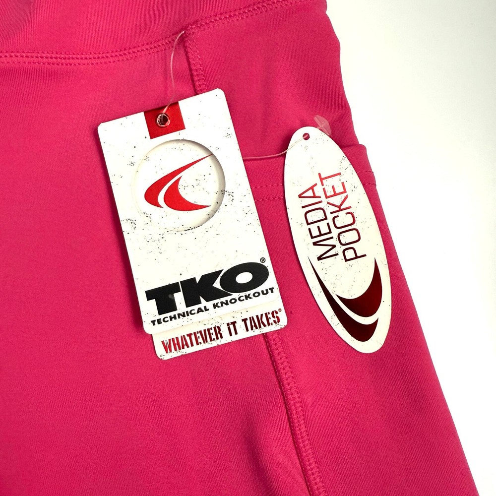 TKO Technical Knockout Leggings Womens Small Pink Media Pocket Athletic NWT Size: Small Condition: Brand new with tags Features: Media pockets on side, Spandex compression fit, Breathable moisture wicking fabric, 7/8 length, High rise, Pull-On