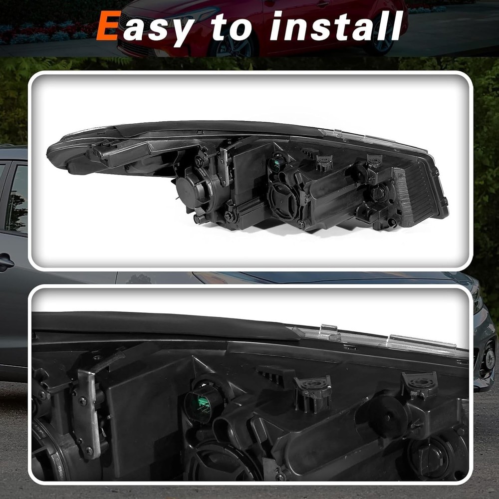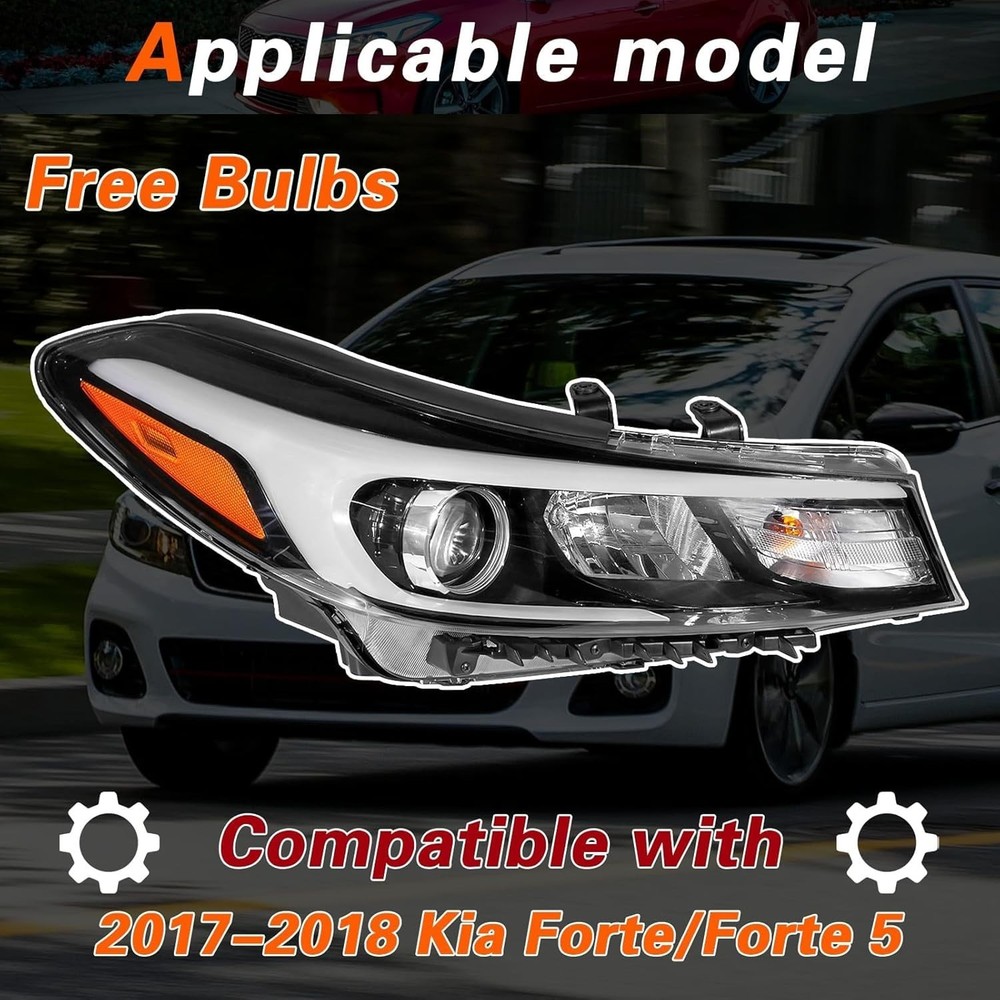 TODO Headlight Assembly for KIA FORTE 2017-2018 17-18 Kia Forte Halogen With bulb(s) Right Passenger Side. Replaces OE Number:92102-B0701 92102B0700 & Replaces Partslink Number: KI2503224 KI2503201. Package Include: 1x pc of Headlight. (Right Side). Bulb type: H11, HB3. All of Our Items are 100% Brand New In Original Packaging. A high quality, Direct Fit OE Replacement Headlight, with FREE 1-year UNLIMITED mileage warranty coverage on TODO.