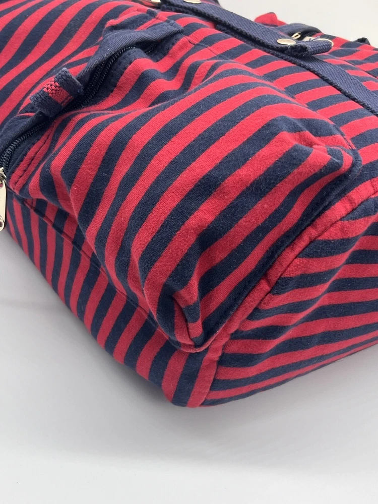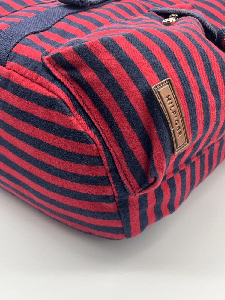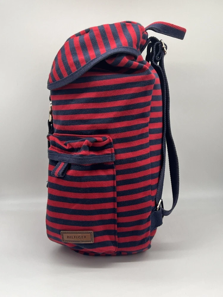 This TOMMY HILFIGER backpack bag is a must-have for anyone looking for a stylish and functional accessory. Made of durable polyester, nylon, and canvas materials, this large-sized bag features a drawstring and snap closure, with adjustable straps for a comfortable fit. The bag comes in a striking blue and red striped pattern, with a Y2K, 90s, retro, and preppy theme that is perfect for travel, casual outings, or workwear. The bag has several features, including outer pockets, laptop sleeve/protection, lightweight and packable design, and a lined interior with silver tone hardware material. It also has a laptop pocket and is suitable for unisex adults. Whether you're looking for a vintage or modern backpack, this TOMMY HILFIGER bag is a perfect choice. Note: Item is clean and measures appropriately 18” H x 14.5” W x 5.5”D. There is a small nick on the ID window and some scratches/ wear on the hardwear; shown in photos! Thank you for stopping by!