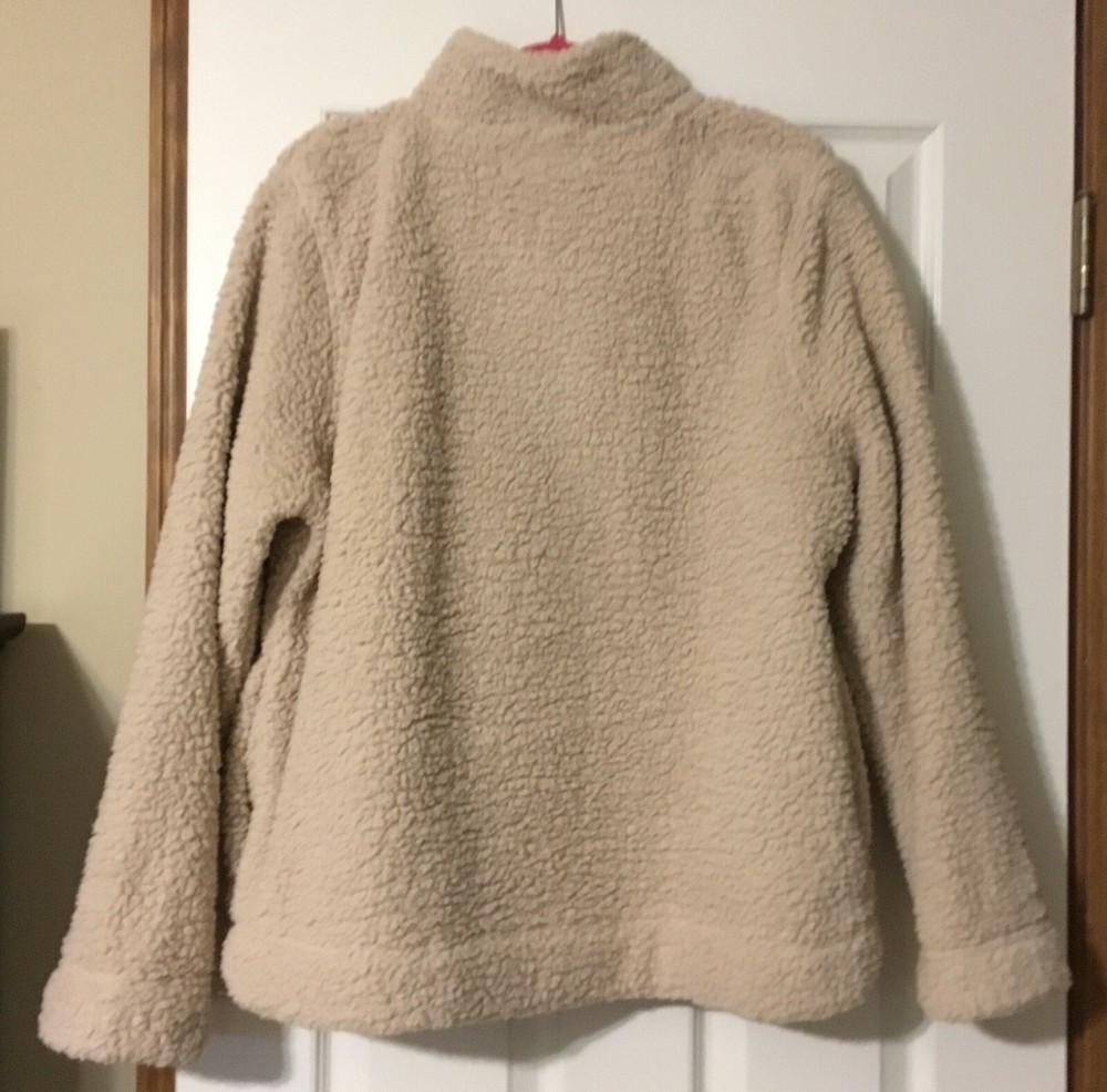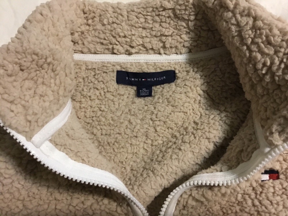 TOMMY HILFIGER Faux Fur Tan 1/4 Zip Pullover Top Jacket Womens Size XL Sherpa. Has pockets. Excellent condition.