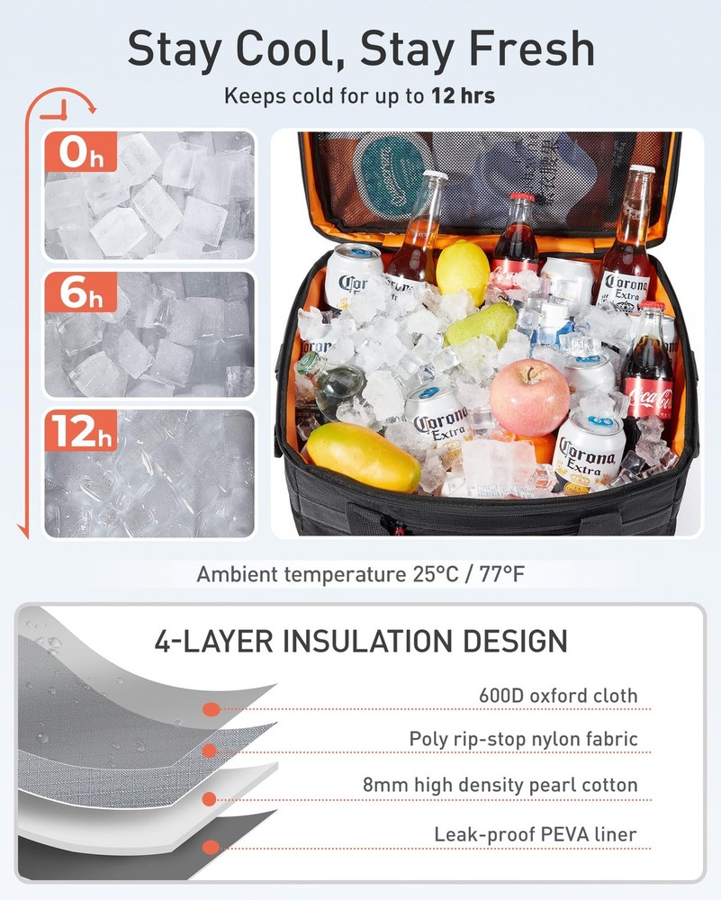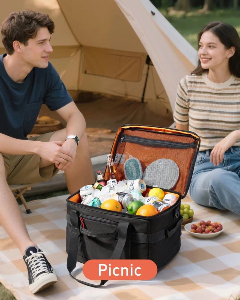 TOURIT Insulated Collapsible Cooler Bag, 48-Can 32L Large 48can/32L, Black Description Features: Large Capacity: Cooler bag can hold a volume of 32L (8.4 Gallons). Make you can bring 48 cans(355ml)of your favorite drink. Overall dimensions approximately 16 ½ x 11 ½ x 10 ¼ inch / 42 x 26 x 29 cm and weight 700g. It is perfect for beaches, camping, hiking, etc Long-term Cooling Time: The main compartment uses high-density insulating materials and waterproof materials to work together to ensure that the food or drinks stay cool for up to 12 hours! Keeps your food and beverages cool longer. 100 % Leak-proof: The inner lining is made of waterproof high-frequency material PEVA, which is high-density and waterproof. Easy to clean. The exterior is made of high-density Oxford cloth and checked cloth, which is firm and wear-resistant, not easy to tear. Multiple Carrying: Designed with a padded handle and a detachable shoulder strap, provide various ways of carrying methods, free to choose to carry by hand or with a shoulder strap. Equipped with a front pocket and two mesh pockets for easy storage of items. With a bottle opener, allowing you to enjoy a cool drink anywhere! Collapsible Cooler Bag & Versatile Use: An elastic rope on the top of the cover, which can put towels and other daily necessities or you can use it to fold the bag up easily to save space when not in use. Large capacity with a longer time insulated, and can also be filled with various snacks and lunches. It is an ideal companion for you to travel or go to work. Product Details: Handling We will ship all orders within 1 business day of payment. Delivery We Do Not Ship Outside of the Continental US. Return Policy All items qualify for returns within 30 days of receipt. Buyer is responsible for return shipping on any item that is not damaged. Feedback We take our reputation seriously, we buy and sell online, so we understand the value of trust. If you are unsatisfied with your order, please contact us and we will work with you to resolve it to your satisfaction.
