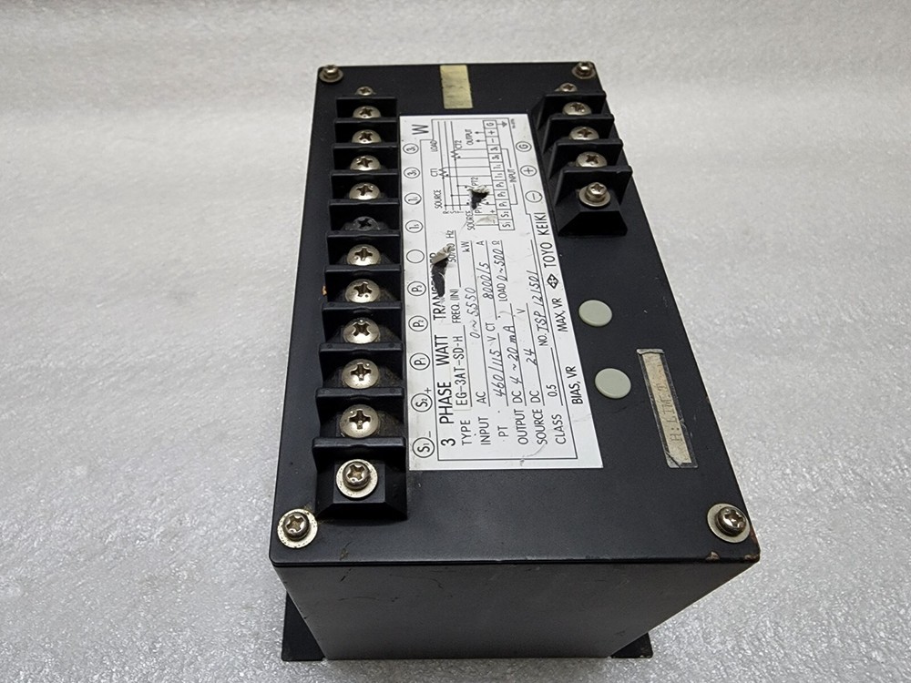 We are pleased to offer TOYO KEIKI EG-3AT-S-H 3-PHASE WATT TRANSDUCER Product Detail: TOYO KEIKI EG-3AT-S-H 3-PHASE WATT TRANSDUCER TYPE: EG-3AT-S-H DESC: 3-PHASE WATT TRANSDUCER Shipment processing time: All orders are processed within 1-2 business days. Orders are not shipped or delivered on weekends or holidays. Shipment confirmation & Order tracking: You will receive a Shipment Confirmation email once your order has shipped containing your tracking number(s). The tracking number will be active within 24 hours. Customs, Duties and Taxes: We are not responsible for any customs and taxes applied to your order. All fees imposed during or after shipping are the responsibility of the customer (tariffs, taxes, etc.). Damages: In case of damage or lost of shipment during transit, We will investigate the matter and provide the satisfactory resolution. Returns Policy: We offer return or exchange of ordered item up to 30 days of receipt of goods in subject to certain condition. In case of damaged goods we shall offer the replacement or refund for the ordered item. If you require any more details, request you to send us the direct message through eBay for early resolution. Thanks