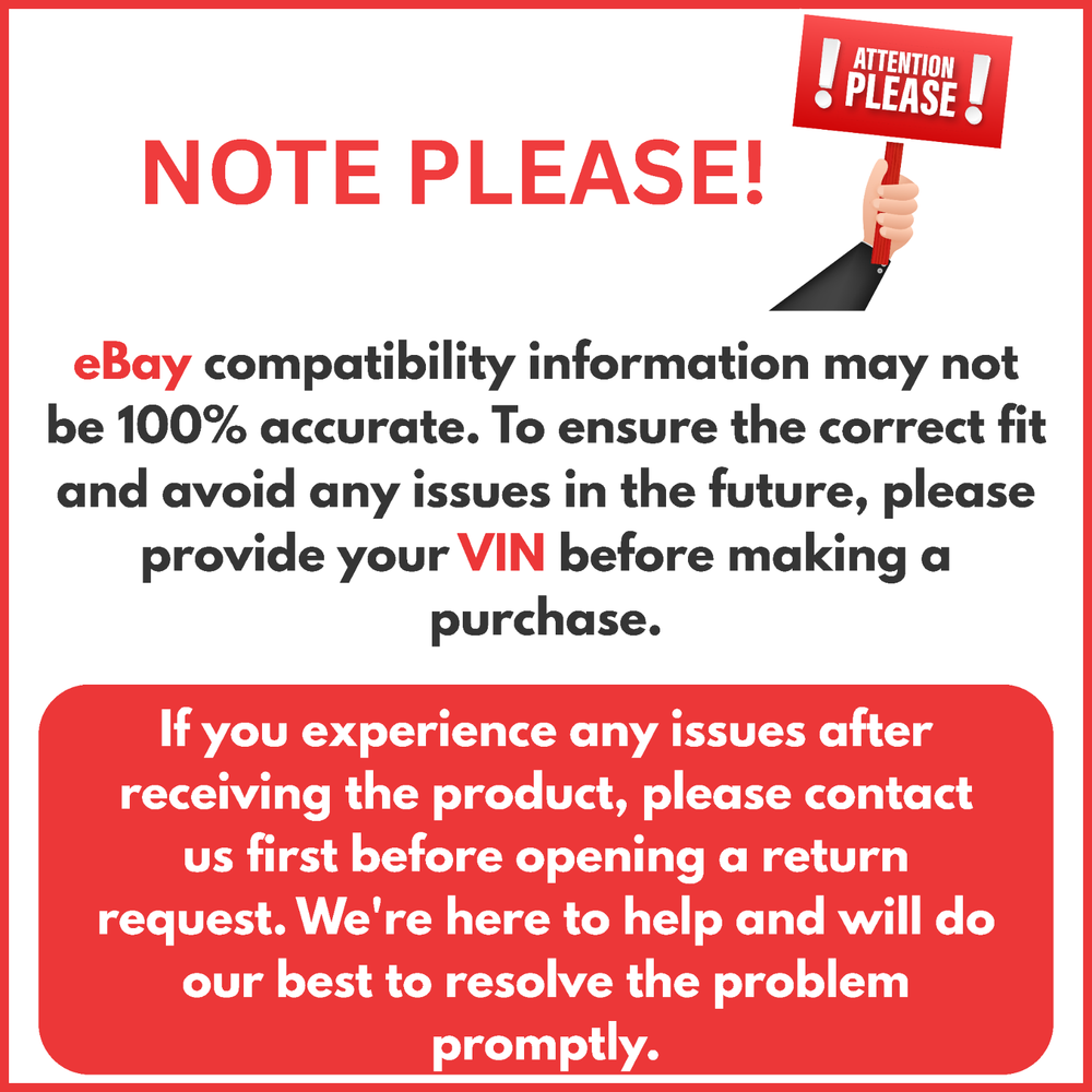 eBay Store Listing Welcome to PARTZFORLESS Genuine OEM Parts | Fast Delivery | Hassle-free Returns Your trusted partner for Genuine OEM Parts We pride ourselves on offering top-quality products with fast shipping and customer support you can rely on. Shop with confidence! Shipping Returns Fitment Warranty Payment Tax Info Remote Area Shipping Contact Shipping Information We ship worldwide, and tracking information is provided as soon as the item ships. Shipping within 3 business days Worldwide shipping available Delivery timeframe: 3-5 days (US), contact us for other countries Return Policy If you encounter any issues with your order, please contact us before opening a return request. We will resolve it promptly. Returns accepted within 30 days Item must be returned in original condition for a full refund Contact us before starting a return Fitment Please verify part number compatibility with your vehicle. If you're unsure, provide your VIN number, and we?ll help you confirm fitment. Warranty Our parts come with a limited warranty for 30 days. Ensure proper installation for warranty coverage. Payment We accept PayPal. Please contact us if you wish to use another payment method. Tax Information We are not responsible for any duties, taxes, or fees that may be imposed by the destination country. Remote Area Shipping For remote areas, shipping rates may vary. Please contact us before confirming your order. Contact If you need assistance, feel free to reach out to us through eBay Messages. We respond within 24 hours! Your satisfaction is important to us. Please contact us if you have any questions