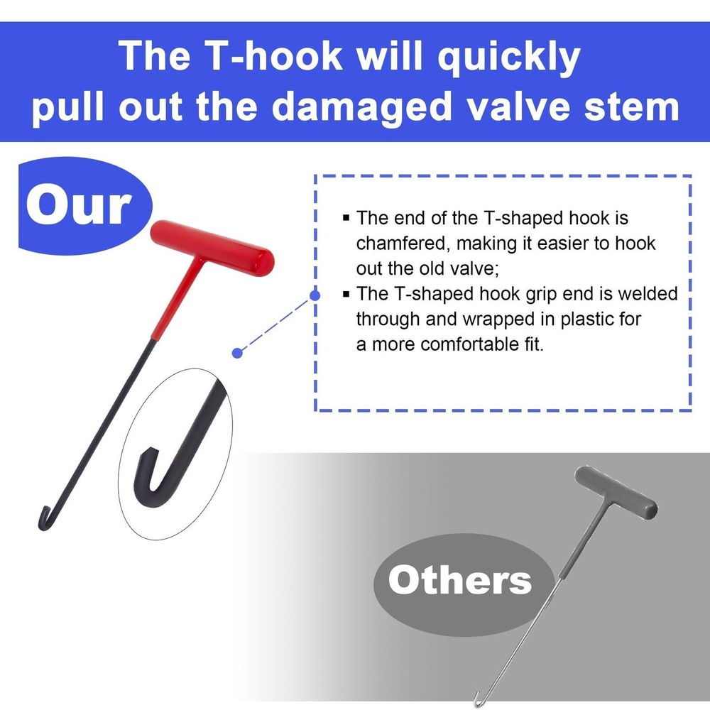 This tire valve stem core tool kit is a game-changer! The solid steel construction and ergonomic nylon handles make it super easy to use—no more struggling with flimsy tools. The T-shaped hook pulls out old cores effortlessly, and the tapered guide ensures perfect alignment when installing new ones. I replaced a leaky valve in seconds without even removing the tire. Super handy for quick fixes and roadside emergencies. A must-have for any driver or DIYer!
