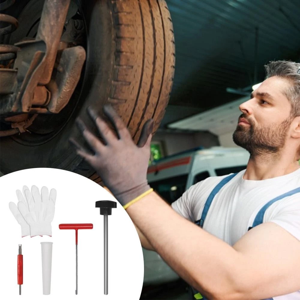 Tire Valve Stem Core Replacement Tool Kit TR413 Valve Core Remover Installer US Product included: Valve Puller * 1PC Double head valve core disassembly tool * 1PC Hook tool * 1PC Upper mouth assistance tool * 1PC Gloves * 1pcs TR413*4PCS TR414*4PCS Valve core * 8PCS Four in one tool * 1PC Feature : 1. Quick valve change tool kit,Ideal for leaking valve stems,Change Valve Stem without removing the tire,Solid Steel construction with industrial grade nylon handles.Be proficient enough to replace a tire valve in 15 seconds 2. The T-shaped hook can quickly pull out the damaged valve core. The tapered positioning tube provides guidance and positioning when installing a new valve core. The metal push rod can accurately push the new valve core into the rim valve hole.Our engineers have improved and tested product structure and product materials many times, hoping to serve you 3. Our tool is suitable for cars,small trailers, light trucks, lawn mowers, wheelbarrows,ATVs and motorcycles. 4. Steps for usage:1.Deflate the tire; 2. Insert the T-shaped hook into the gap between the wheel hub and the valve core, rotate the hook to pull out the valve core; 3. Install the new valve core to the push rod; 5. Taper positioning The tube is aligned with the valve hole, and the push rod installs the valve core through the tapered positioning tube; 5. Rotate the push rod to disengage the valve core. On Aug 18, 2025 at 09:52:09 PDT, seller added the following information: