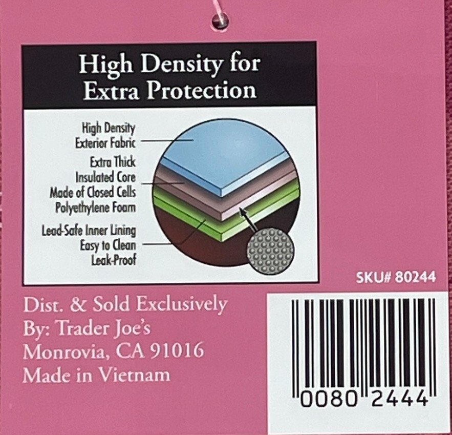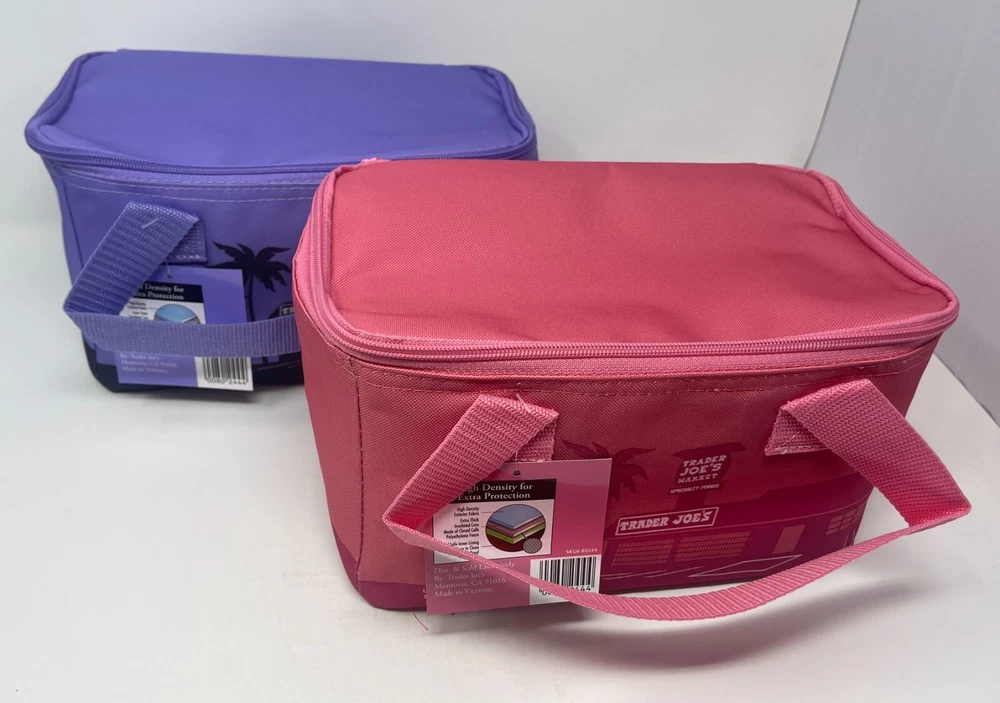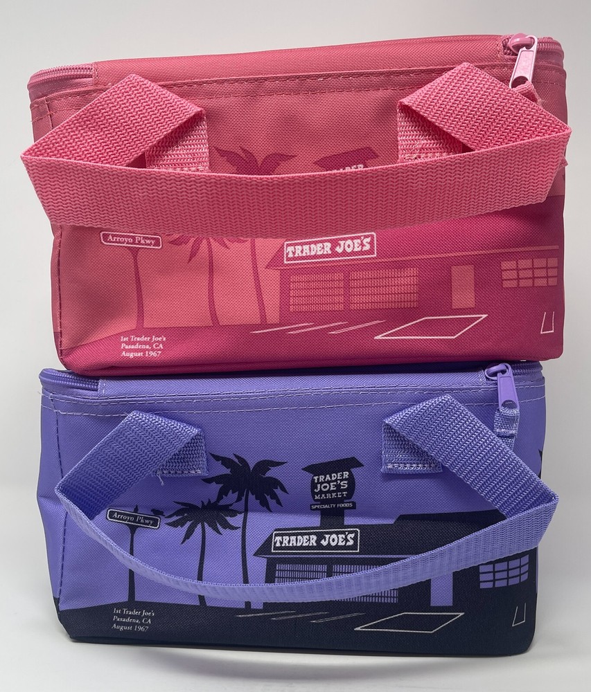 Trader Joe's Mini Insulated Tote/Lunch Bag Bundle Includes two small two-piece tote bags: Pink (1) and Lavender (1) colors. Dimensions: 6" x 6" x 10" Capacity: 1.5 Gallons Material: polyester, nylon, and canvas These foldable bags feature a zipper closure and are designed for hand wash only. Perfect for carrying lunch or small items, these traditional style bags are original Trader Joe's products. I try my best to take good quality pictures so you can determine that the overall condition meets your requirements and expectations. Therefore, please zoom-in to review the condition of the product. I check each item before listing, and state in the description any flaws that I see. However, it is possible to make a mistake. If there is a problem with your purchase, please contact me, and I will try to resolve any issues you have. I strive for 100% customer satisfaction. Return Policy: I accept returns within 15 days of purchase. Items must be returned in the same condition. Return shipping is the buyers responsibility. You will receive a refund for the actual cost of the item and the original postage fee only.