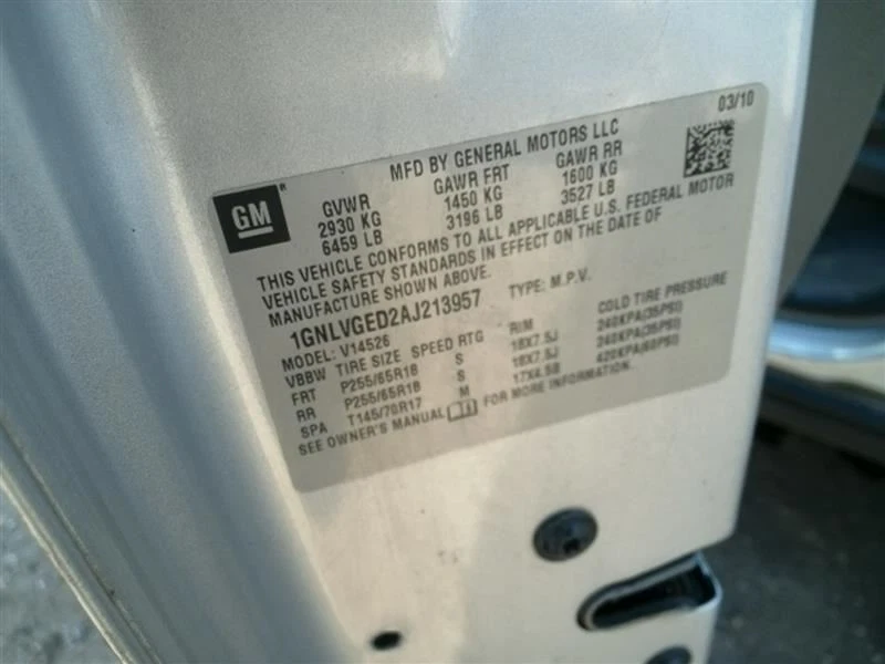 TRAVERSE 2010 Jack 31657471 NO FOAM TRAY NO SPARE TIRE This part requires VIN (Vehicle Identification Number) verification prior to shipping. Please send VIN prior to purchase, or include in your purchase notes. If not, VIN will be requested after purchase, prior to shipping the order. Without VIN verification, orders are subject to seller cancellation. If you have any questions about this part, or any other parts from this vehicle, please click HERE to send us a message . We answer all questions promptly during regular business hours. Monday through Friday 7am-5pm Central Time. Donor Vehicle Information Model: TRAVERSE Year: 2010 Mileage: 151000 Stock Number: 1KK009 Specific Part Notes: 000,4DR,ASSEMBLY Explanation of damage codes in part notes: - Part Fitment Information This part will fit these makes and models with these options If you do not see your vehicle in this list, please click HERE to send us a message so before buying so we can verify if it will fit your vehicle. - Our Promise Our Promise is that you are completely satisfied with every part you buy from Counselman Auto Recycling If you have a problem with the part, changed your mind or the part does not fit, simply let us know. If you need help with how to return an item, send us a message. We are here to help. - Shipping Information This part willl ship with Fedex or USPS with live tracking information. The tracking number will be posted to eBay and you can find it in your item purchase history.