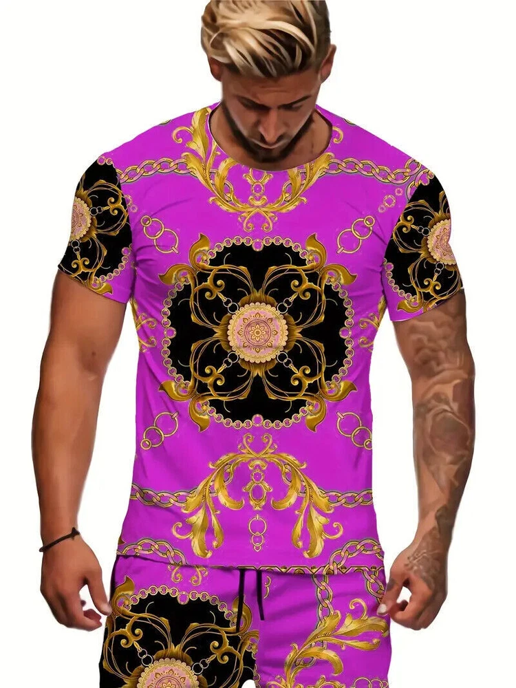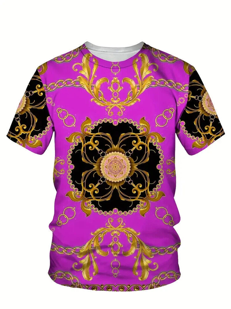 T-Shirt Novelty Fashion Golden Chain Casual Short Sleeve Vintage Round Neck M, L, XL, 2XL - Ultra Soft & High Quality Material for Comfort and Durability - Machine Washable, Easy Care - Smooth & Lightweight Fabric for Sport Performance - Shrink Resistant Material Wicks Sweat & Dries Fast - Super Fast Shipping from USA