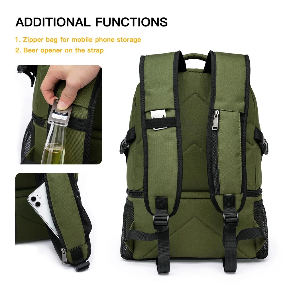 TUGUAN Insulated Cooler Backpack 38/42 Cans Double Deck Leakproof Lightweight Soft Lunch Backpack Small Cooler Bag Beach Picnic, Green Insulated cooler backpack: 17x13x17 inches; 1.72 Pounds, the refrigerated compartment can store 16 cans of beer. If ice cubes are placed, the amount of beer will vary with the number of ice cubes. Room temperature compartment capacity is 18 Cans. Picnic backpack is only suitable for standing. Beach Backpack Cooler function: Besides used as excellent lunch cooler bag, it is also a perfect lightweight gear for hiking backpack, camping backpack, fishing bag, hunting backpack, travel backpack, trail, cycling, overnight stay and other outdoor activities. Suitable for both men and women. 2-In-1 Dual compartment small cooler backpack: Main compartment keeps contents cold and prevents leaks with heat-welded seams Lunch backpack light yet durable: Made of waterproof, durable fabric, best lightweight backpack with ice packs cooler. Beach cooler durable & scratch-proof: The backpack coolers are made of heavy duty nylon which will not rip, tear or scratch, but lightweight to carry. Padded and fully adjustable shoulders straps offer the maximum comfort and support. Shipping We offer FREE shipping on all orders! We use a selection of shipping services such as UPS, FedEx, USPS etc. We only ship to the lower 48 states, no APO/FPO addresses or PO Boxes allowed. Local pickups and combined shipping options are not provided at this time. Return You can return a product for up to 30 days from the date you purchased it. Any product you return must be in the same condition you received it and in the original packaging. Please keep the receipt. Payment We accept payment by any of the following methods: PayPal Please pay as soon as possible after winning an auction, as that will allow us to post your item to you sooner! Feedback Customer satisfaction is very important to us. If you have any problem with your order, please contact us and we will do our best to make you satisfied. Contact Us If you have any queries, please contact us via ebay. We usually respond within 24 hours on weekdays. Please visit our eBay store to check out other items for sale! Thank you for shopping at our store.